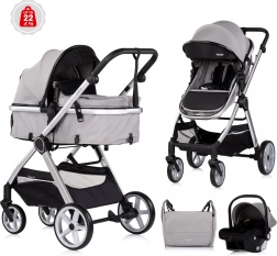 CHIPOLINO Vista Cloud Grey su praktična kolica 2u1 koja spajaju duboku košaru i sportsko sjedalo u jednom rješenju. Zahvaljujući pametnoj konstrukciji, sjednu jedinicu lako pretvarate u košaru za novorođenče i natrag, uz mogućnost postavljanja u smjeru i suprotno od smjera vožnje. Lagani aluminijski okvir s eloksiranim efektom i ovjes na svim kotačima osiguravaju udobnu i stabilnu vožnju u gradu i parku.
