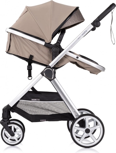CHIPOLINO VISTA 2u1 su univerzalna kolica koja rastu s vašim djetetom od rođenja do dobi djeteta koje prohodava. Sjednu jedinicu lako pretvorite u duboku košaru za novorođenče, a zahvaljujući mogućnosti postavljanja u smjeru ili suprotno od smjera vožnje kolica prilagodite trenutačnim potrebama. Lagani anodizirani aluminijski okvir i kvalitetan ovjes na svim kotačima osiguravaju glatku i udobnu vožnju u gradu i parku.