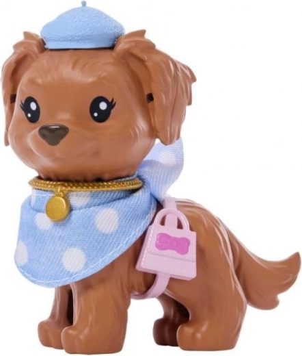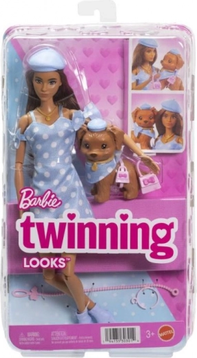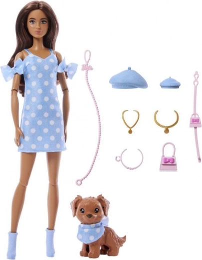 Ovaj modni set donosi lutku Barbie u šarmantnim točkicama i slatkog psića s usklađenim dodacima. Djeca će uživati u satima maštovite igre zahvaljujući bogatoj opremi i detaljnoj izradi koja potiče pripovijedanje priča i razvoj kreativnosti.