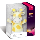 Ova mekana plišana žirafa služi kao umirujuće noćno svjetlo koje nježno obasjava dječju sobu. Automatski mijenjajuće se šareno svjetlo (7 boja) stvara ugodnu atmosferu za lakše uspavljivanje.