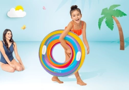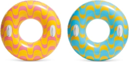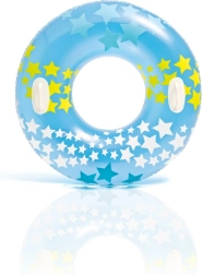 Napuhavajući kolut INTEX s razigranim motivom zvjezdica idealan je za ljetne vodene radosti. Zahvaljujući promjeru od 91 cm pruža udobnu potporu, a dvije integrirane ručke omogućuju sigurniji hvat i bolju upravljivost u vodi. Kvalitetan materijal i precizna izrada osiguravaju dug vijek trajanja i sigurnu upotrebu.
