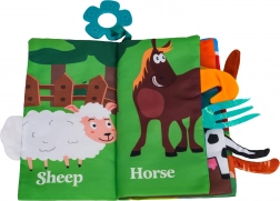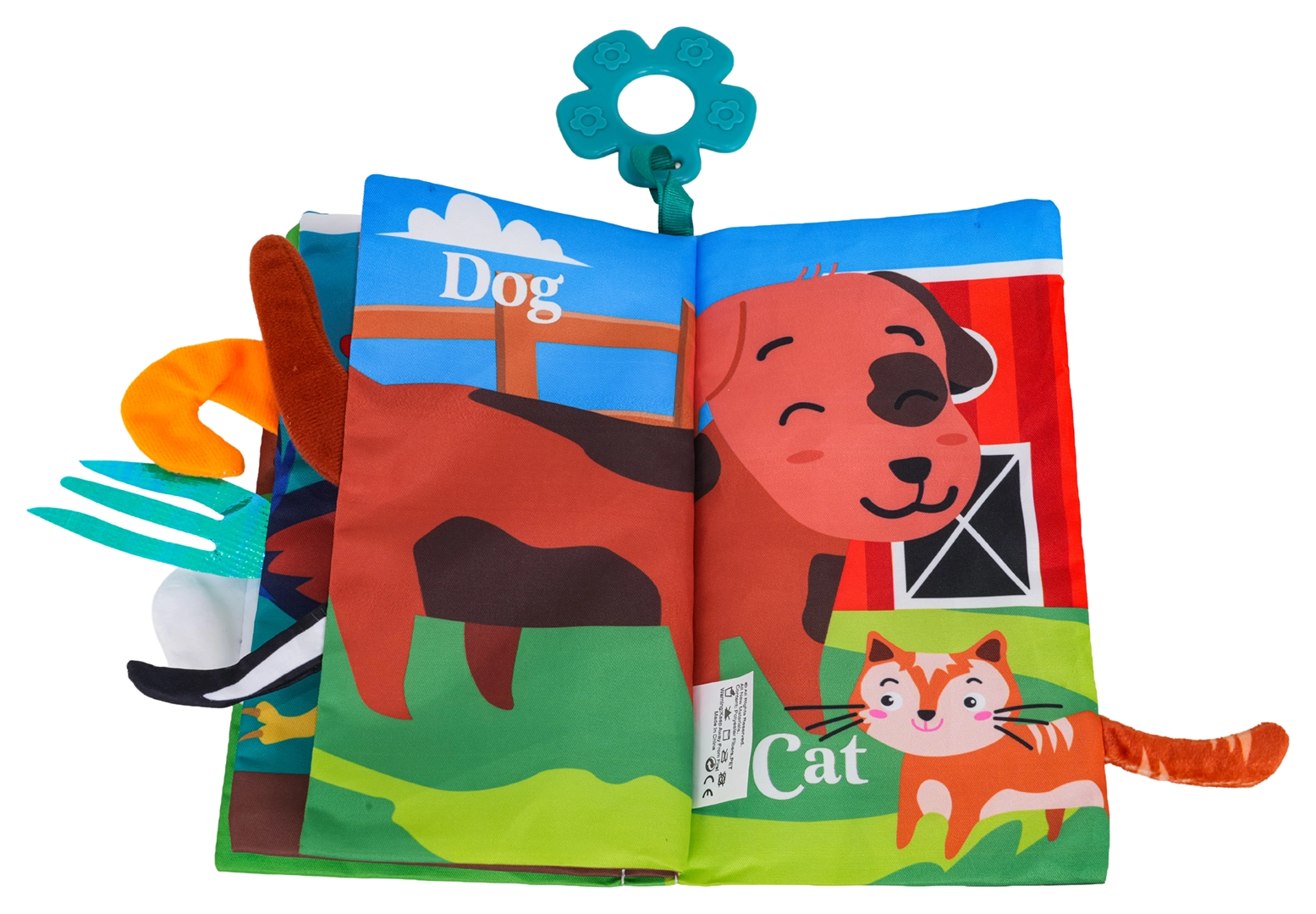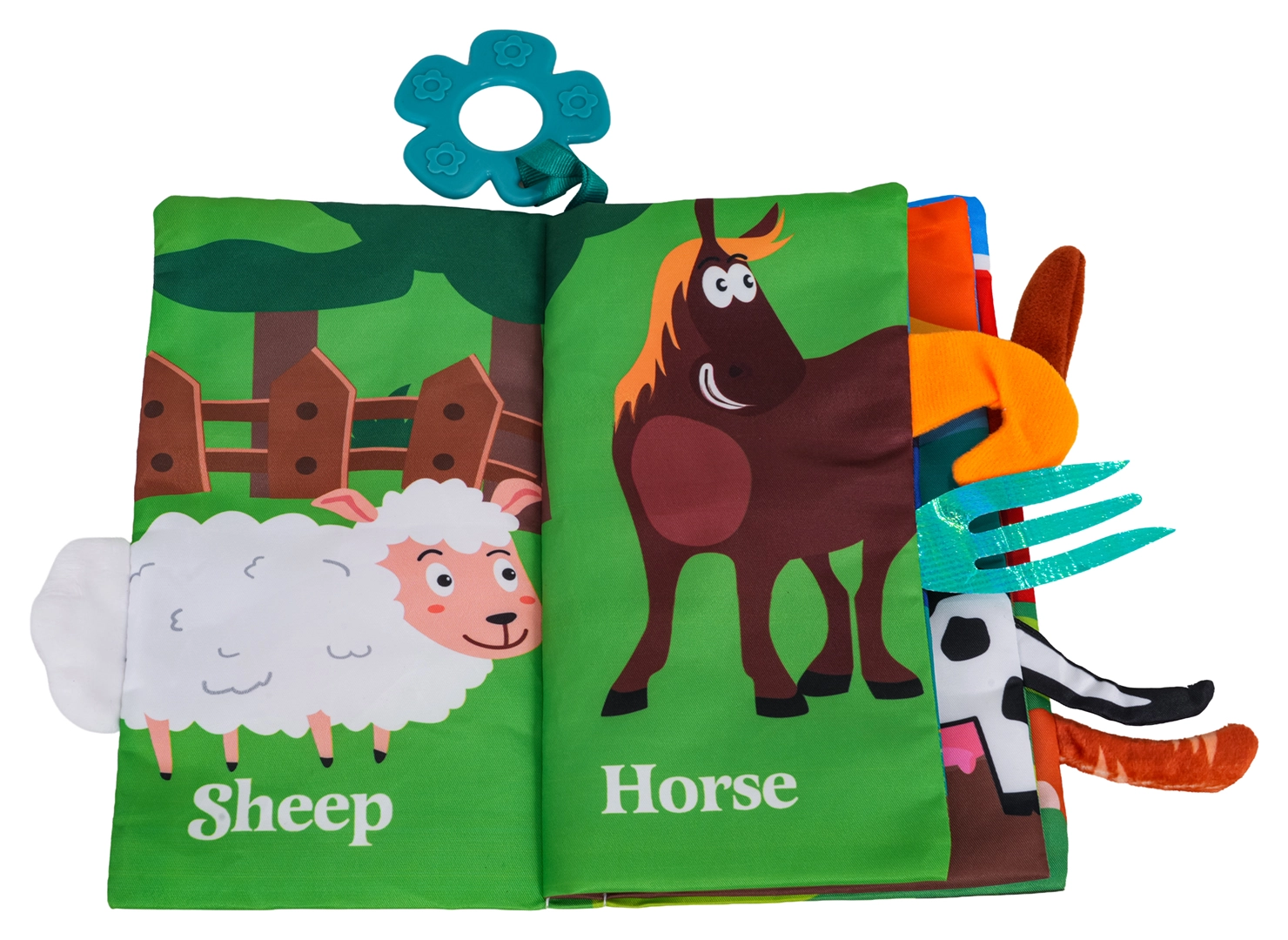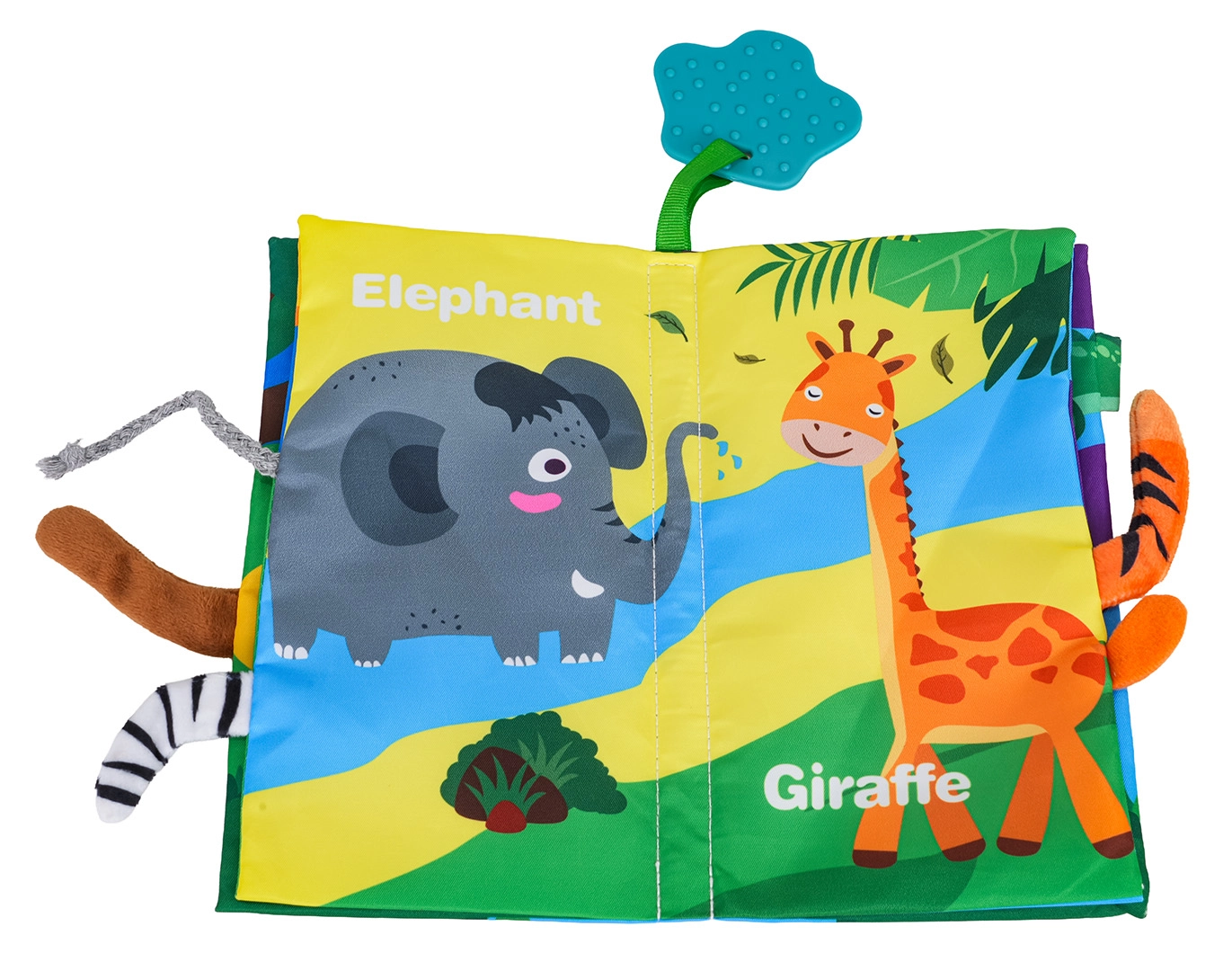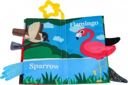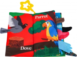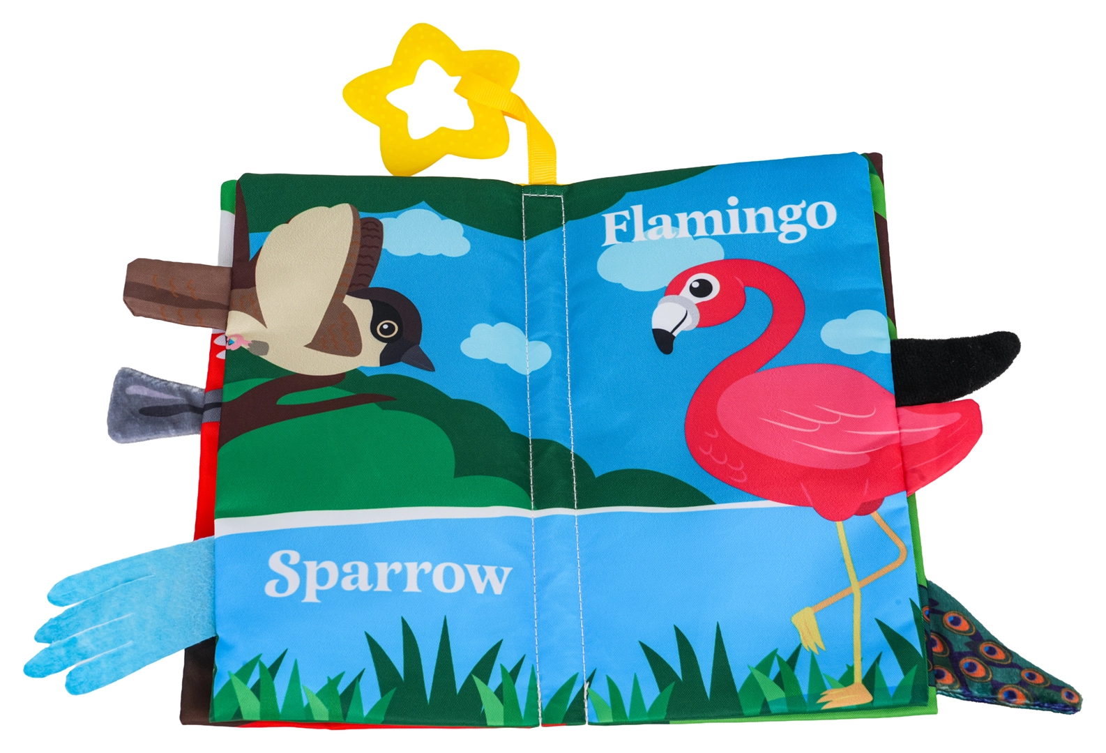 Otkrijte simpatičan set od tri platnene knjižice za djecu od 3 mjeseca, koje potiču osjetila i finu motoriku. Svaka knjižica nudi šuškave stranice, meke teksture, izbočene životinjske repiće i praktičnu grickalicu/klip za pričvršćivanje. Teme farma, ptice i džungla oduševit će živopisnim ilustracijama i jednostavnim oznakama životinja na engleskom jeziku. Platnene knjižice su lagane, vodootporne i lako se čiste – idealne za dom i putovanja.