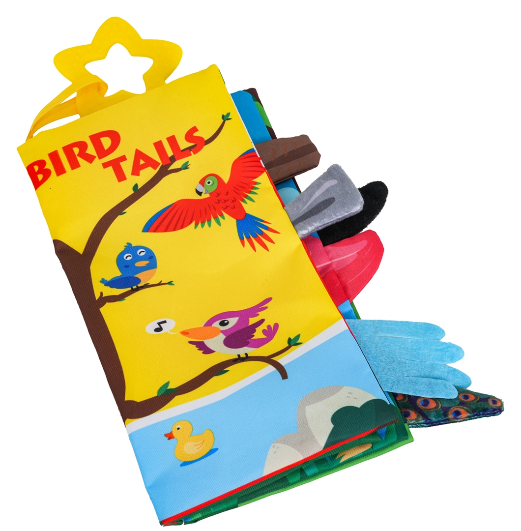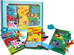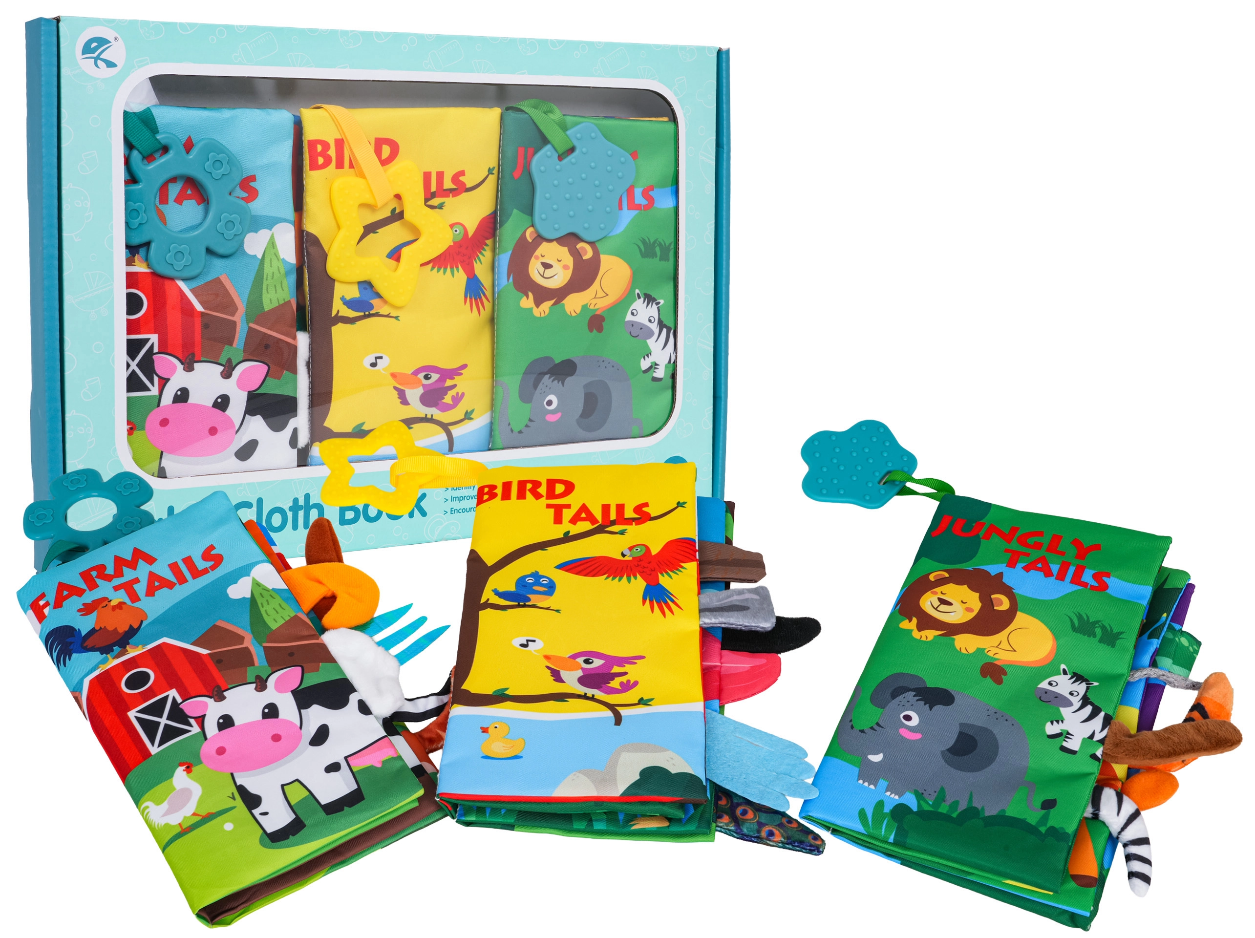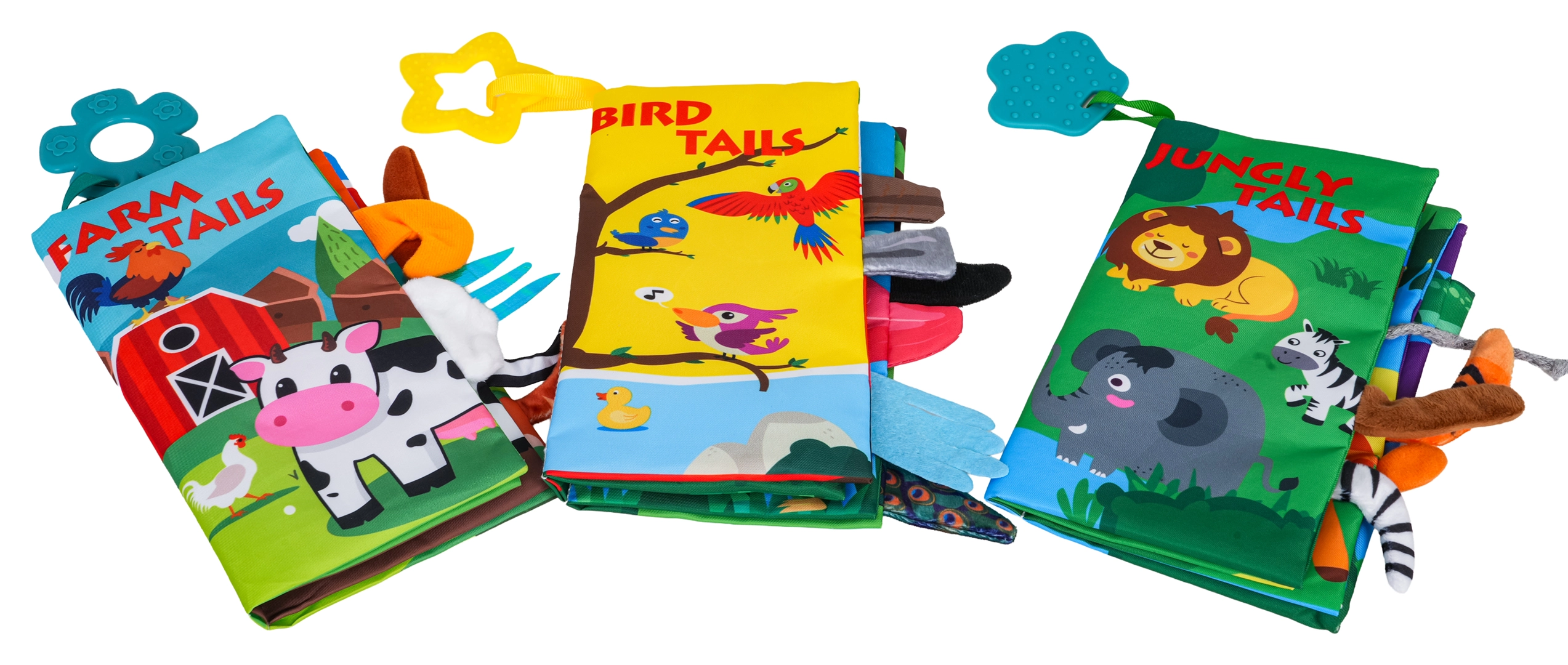 Tri meke platnene knjižice Farm Tails, Bird Tails i Jungly Tails pružaju djeci sigurnu i poticajnu zabavu već od 3 mjeseca. Šarene ilustracije, šuškavi efekti i taktilni elementi u obliku repića, krila i ušiju potiču osjetilni razvoj, koordinaciju ruka–oko i prvo učenje naziva životinja na engleskom.