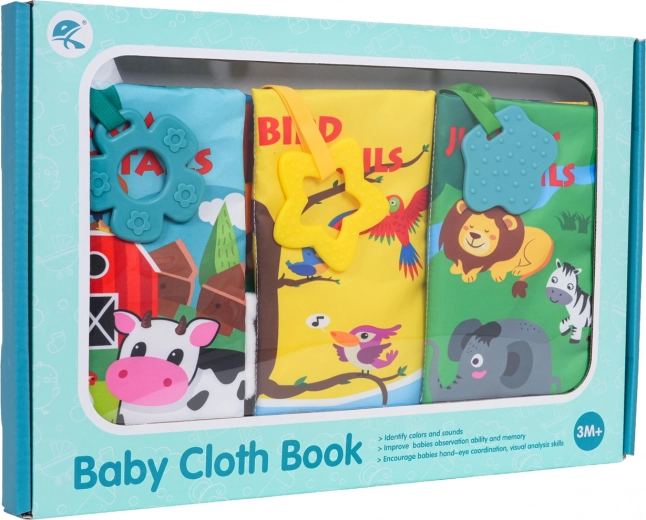 Set mekih platnenih knjižica za bebe s repićima i grickalicama
