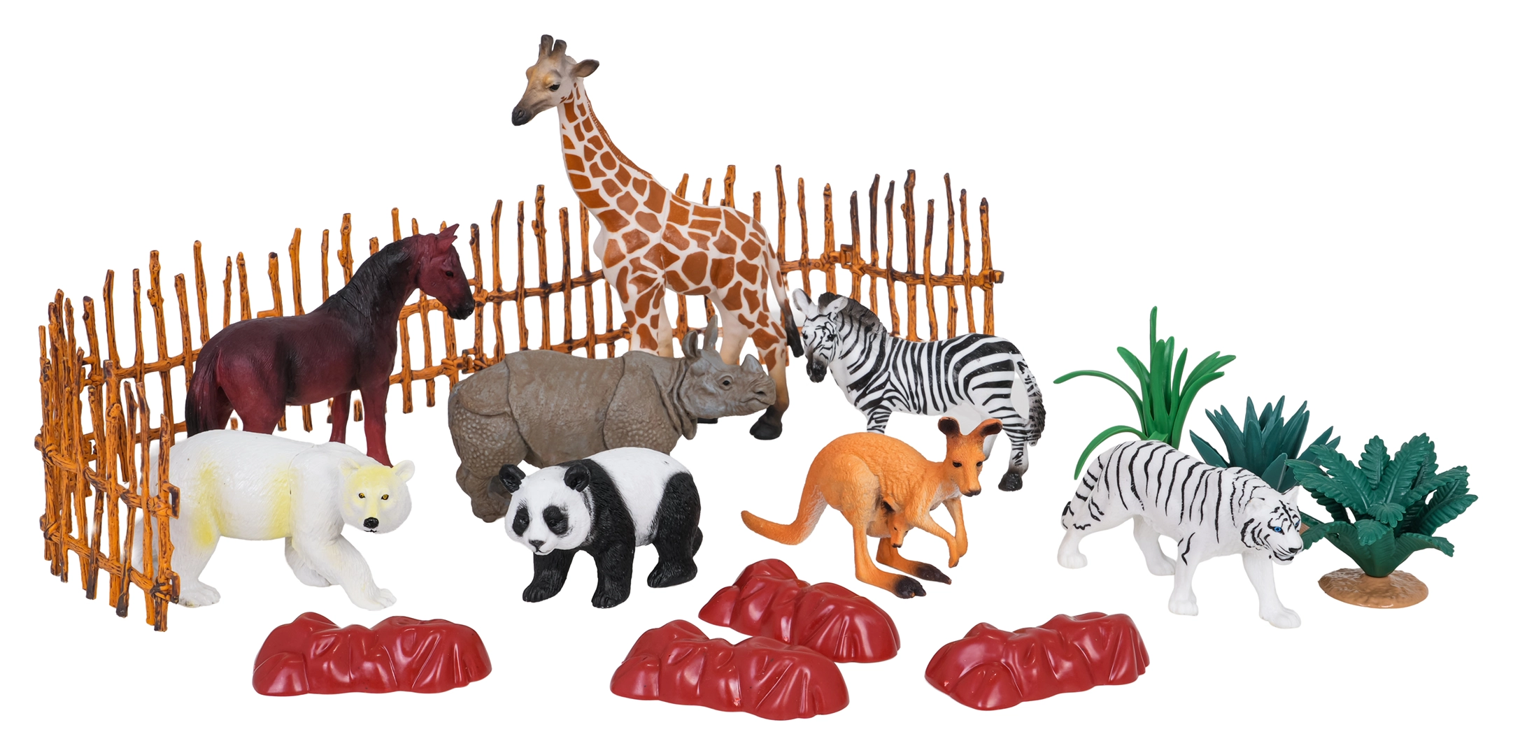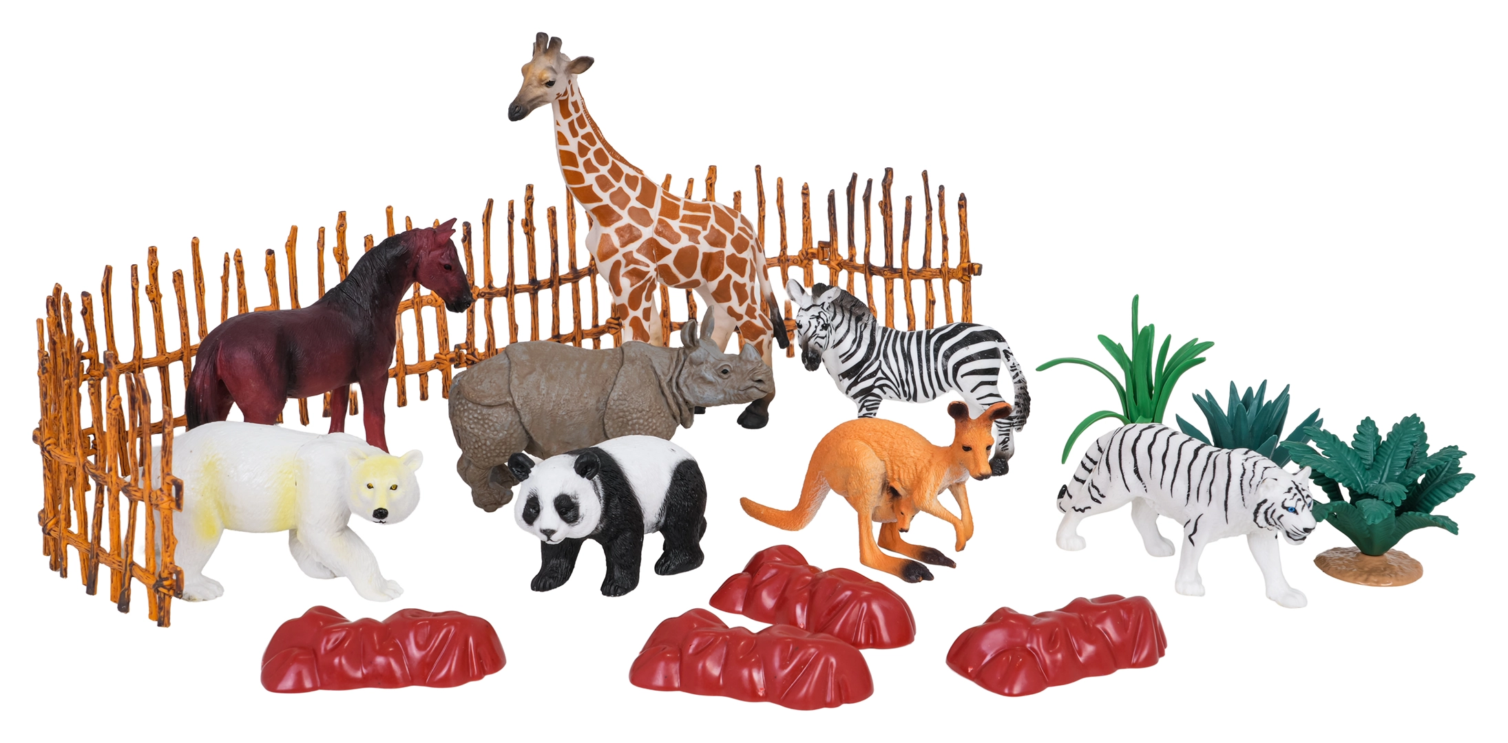 - Detaljne figurice žirafe, zebre, tigra, nosoroga, pande, polarnog medvjeda, konja i klokana