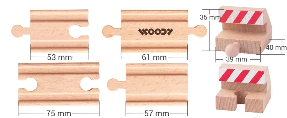 Ovaj praktičan set donosi kombinaciju ravnih dijelova tračnica i završnih odbojnika koji sprječavaju vlakove da skliznu s pruge. Dijelove lako možete uklopiti u svoju postojeću drvenu željezničku prugu i odmah proširiti mogućnosti igre. Zahvaljujući kompatibilnosti s popularnim brendovima kao što su BRIO, IKEA, ELC, Eichhorn, Woodyland, Tesco, Carousel i Bigjigs Toys, izgradit ćete dulje, sigurnije i zabavnije rute.