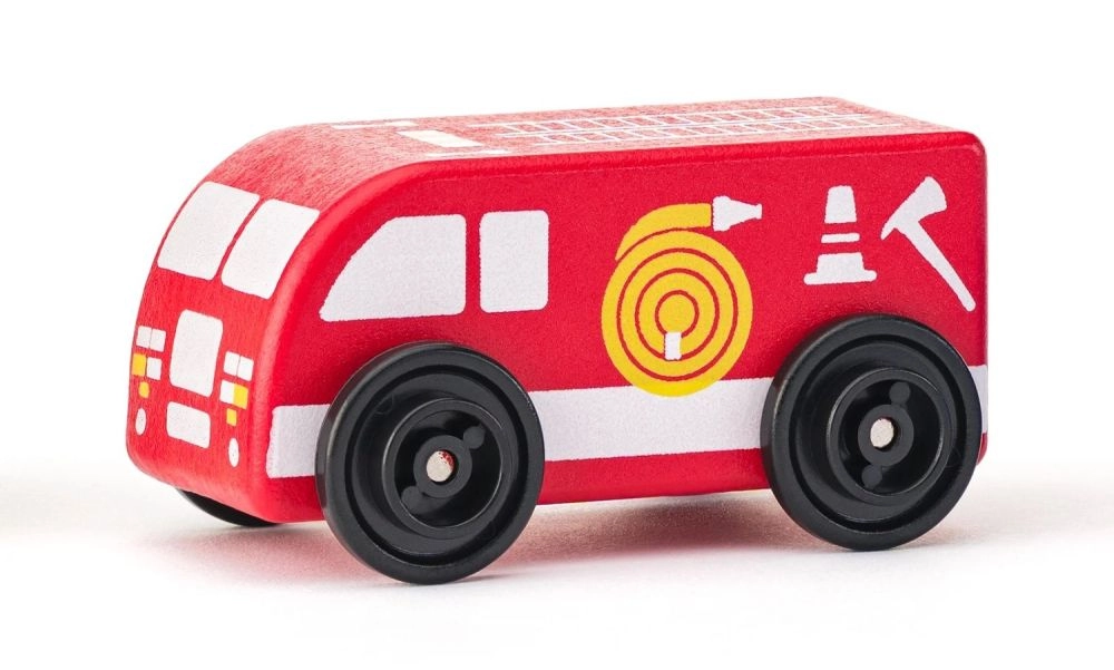 Ovaj šareni set sadrži izbor omiljenih gradskih vozila u dječjoj veličini (otprilike 7 × 4,5 × 3,5 cm). Svako vozilo ima glatke rubove za sigurno držanje i izdržljivu površinu koja podnosi svakodnevnu igru. Zahvaljujući jednostavnom dizajnu i jasnim tiskanim oznakama djeca lako prepoznaju pojedine uloge vozila u gradu.