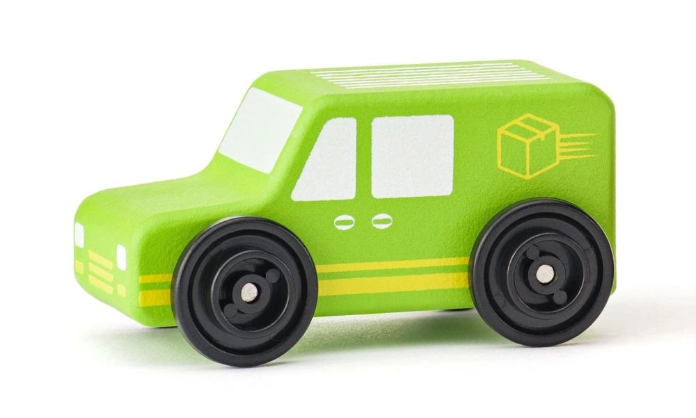 Igra s vozilima potiče razvoj koordinacije ruka–oko, prostorne mašte i društvenog učenja. Robusna drvena konstrukcija i glatki kotači osiguravaju neometanu vožnju po svakoj ravnoj površini, kod kuće i u vrtiću.