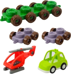 Svaki dio označen je slovom ili brojkom, što potiče razvoj logičkog razmišljanja, pamćenja i fine motorike. Djeca mogu graditi jednostavne konstrukcije, slagati prve riječi i brojati. Figurice, vozila i konstrukcijski elementi proširuju mogućnosti igre.