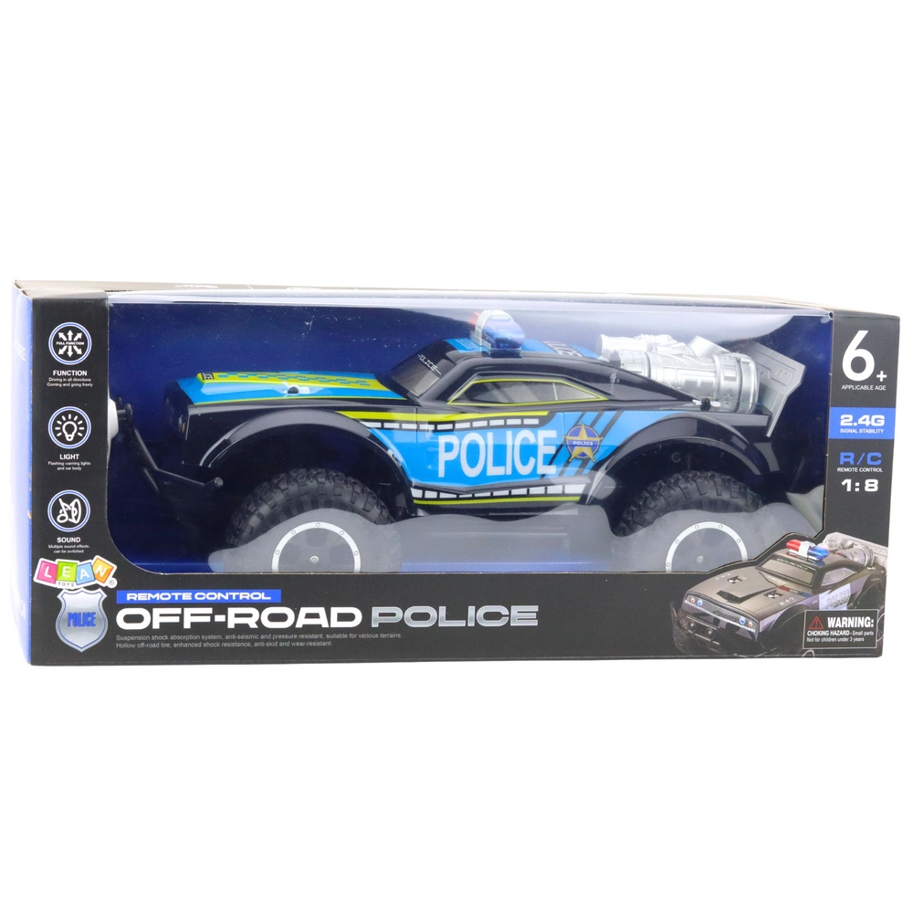 Brz i izdržljiv policijski terenski automobil na daljinsko upravljanje u mjerilu 1:8 donosi akcijsku zabavu na cesti i u terenu. Zahvaljujući snažnom pogonu, gumenim gumama, ovjesu s oprugama i frekvenciji 2.4 GHz omogućuje glatku vožnju bez smetnji. Realistični svjetlosni i zvučni efekti (rotirke, sirena, motor) pojačavaju svaki policijski lov.