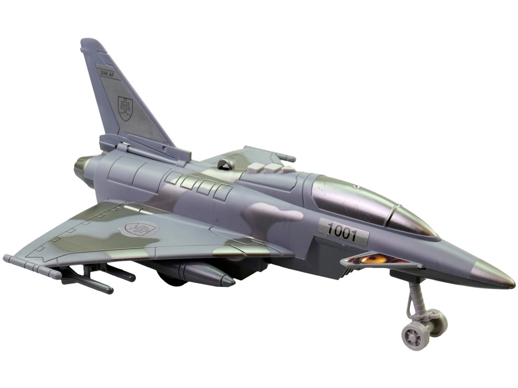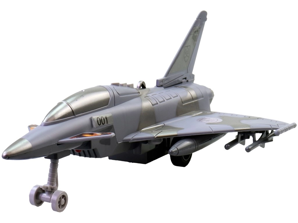 Ovaj realistično izrađen lovački avion oduševit će sve male ljubitelje zrakoplovstva. Dovoljno ga je pogurnuti i zahvaljujući inerciji će se pokrenuti, dok LED svjetla i autentični zvukovi dodatno naglašavaju uzbudljivu atmosferu igre. Stabilno podvozje s slobodno okretnim kotačićima osigurava gladak pokret po podu.