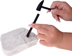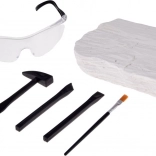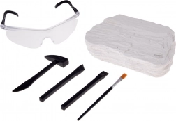 Dio seta je robustan gipsani blok i zaštitne naočale koje štite oči tijekom otkrivanja fosila. Idealno za sigurnu kućnu arheologiju.
