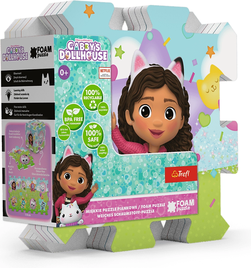 Pjenaste puzzle TREFL s omiljenim dječjim ilustracijama donose udoban i siguran prostor za igru. Poseban materijal sličan debeloj podlozi za kampiranje ili višeslojnom mirelonu osigurava mekoću, izdržljivost i jednostavno održavanje – nakon igre dovoljno je površinu obrisati vlažnom krpom. Zahvaljujući debljini od 1,5 cm dijelovi su stabilni i ugodni na dodir.
