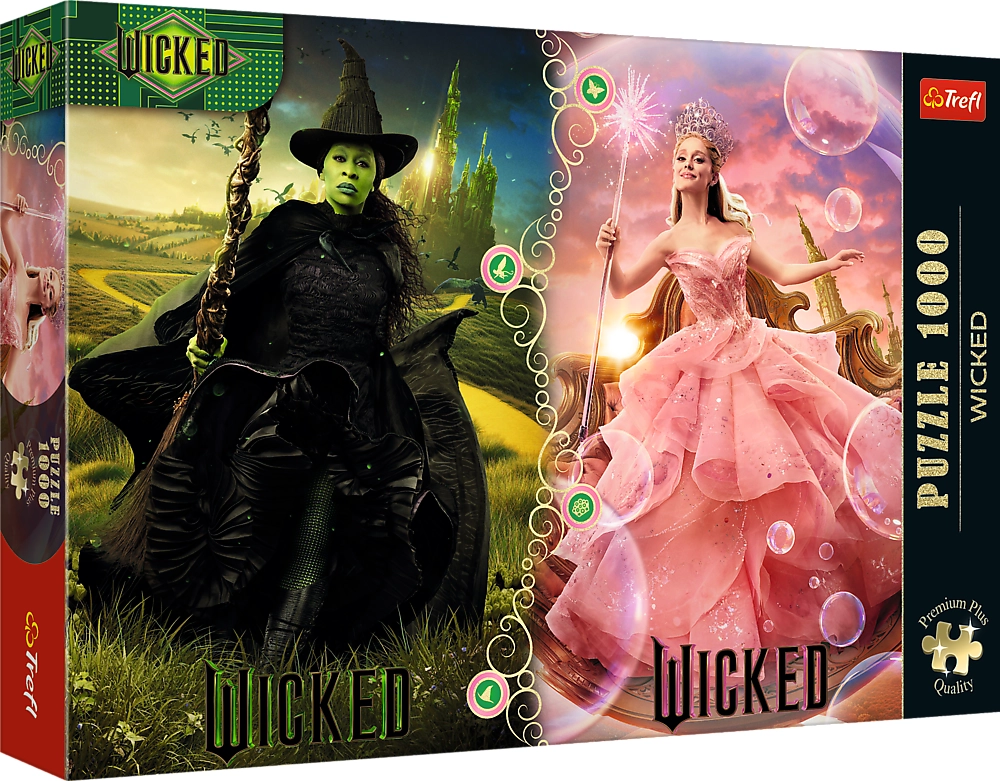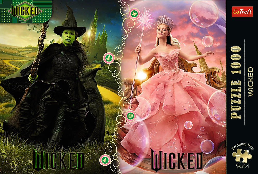 Ovo izdanje Trefl Premium Plus donosi puzzle s kultnim motivom Wicked – Elphaba i Glinda – u prekrasnoj izvedbi koja će oduševiti svakog ljubitelja kvalitetnih slagalica. Dijelovi od ekstra čvrstog kartona savršeno se uklapaju, a složenu sliku možete lako premještati bez straha od rasipanja.