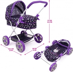 Izvlačna tenda štiti lutku od sunca i vjetra, a donja košara nudi dovoljno mjesta za sitnice. Kolica su prikladna za lutke do cca 46 cm, pa odgovaraju većini omiljenih igračaka.