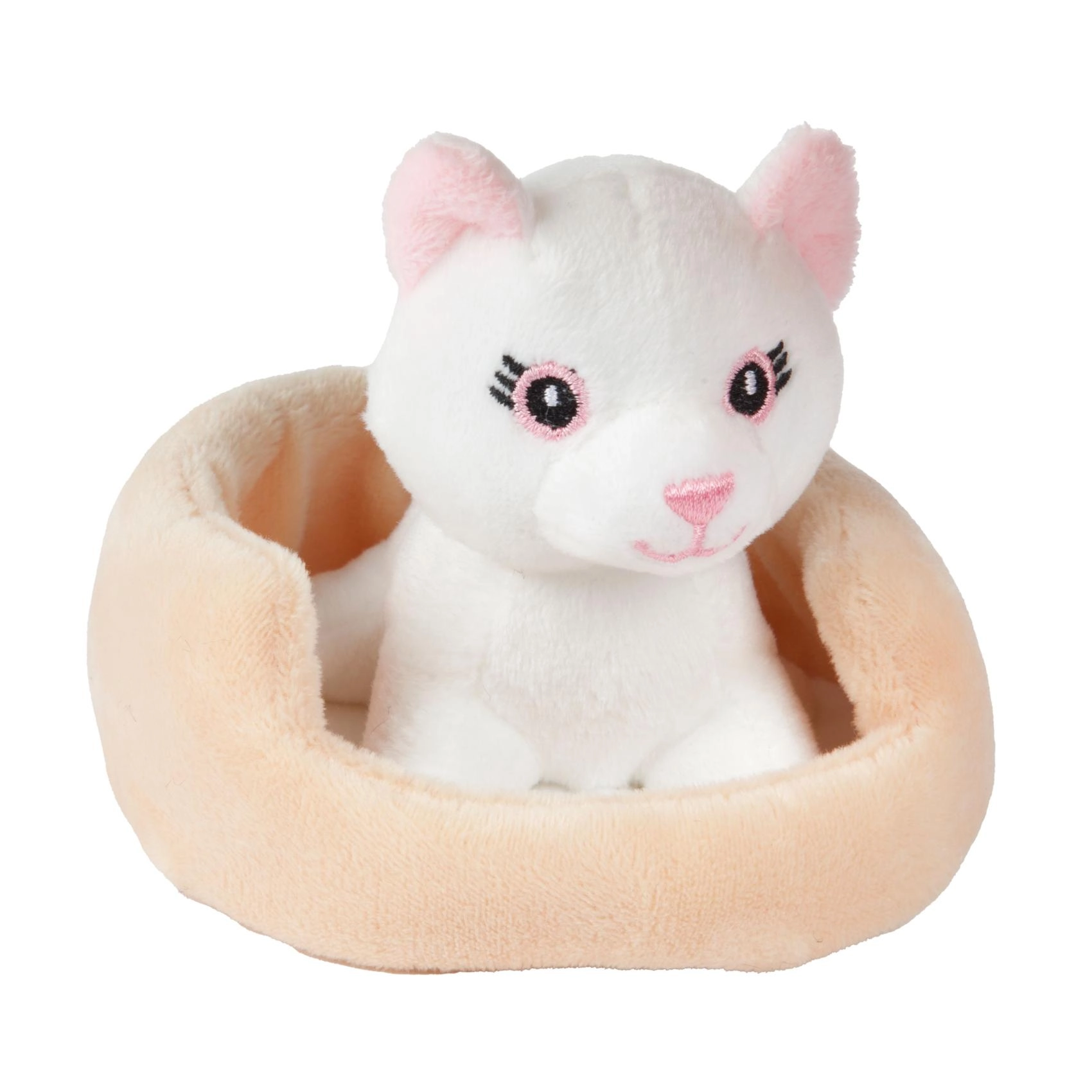 Ova preslatka plišana mačkica ili psić u ugodnom gnjezdašcu savršen je prijatelj za svakodnevnu igru i uspavljivanje. Zahvaljujući mekanom plišu i kompaktnoj veličini lako ga drže i najmanje ručice te potiče maštu i brižnu igru.