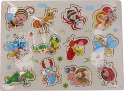 Otkrijte zabavnu i edukativnu igračku za najmlađe: drvenu slagalicu ubacivanja s motivom kukaca dimenzija 30 × 22,5 × 1 cm. Pomaže razvijati finu motoriku, logiku i prepoznavanje oblika i životinja.
