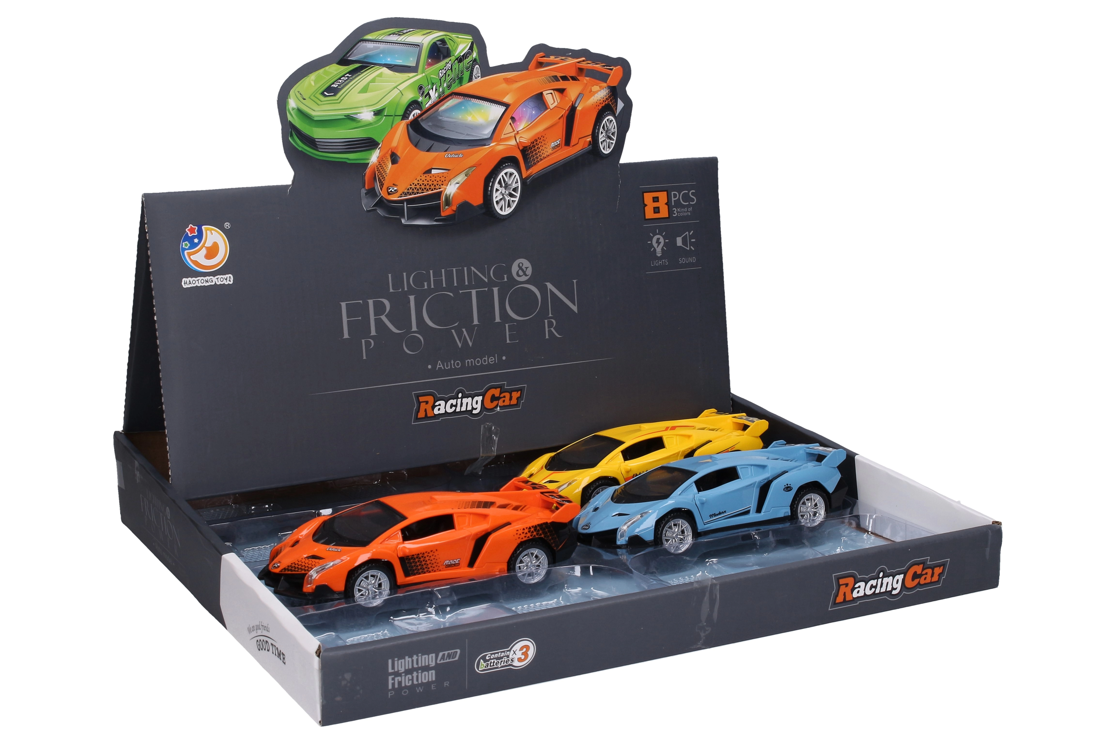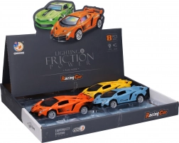 Zabavno auto na inerciju duljine 15 cm razveselit će svakog malog vozača. Nudi svjetlosne i zvučne efekte, gumb za reproduciranje glazbe smješten na donjoj strani auta i spremno je za trenutačnu upotrebu zahvaljujući baterijama 3× AG13 u pakiranju. Dostupno je više kolorističkih varijanti te praktično pakiranje u display boxu.