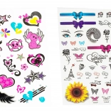 Otkrijte šareni svijet privremenih tetovaža za djevojčice. Na svakom arku pronaći ćete desetke slatkih motiva u različitim veličinama – od leptirića i cvijeća do srca, mašnica i zvjezdica. Zahvaljujući jednostavnom postupku mogu ih nanositi i djeca uz nadzor odraslih. Tetovaže su idealne za proslave, karnevale, poklone u party paketićima i kao kreativni ukras za vikend.