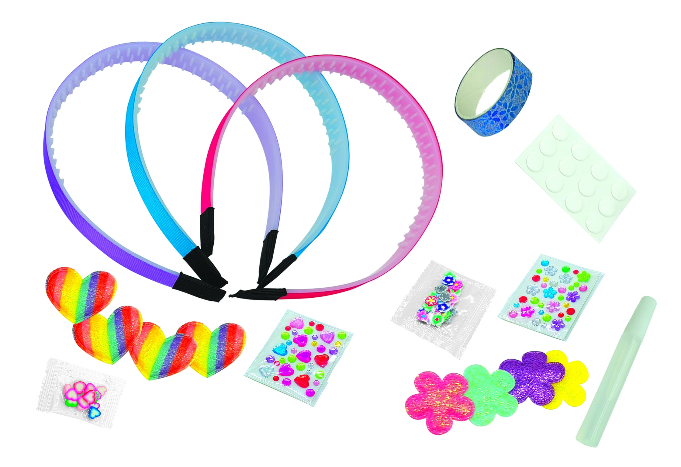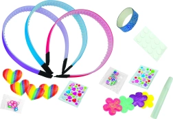 U pakiranju se nalazi sve što je potrebno za izradu 3 trake za kosu – od osnovnih plastičnih traka do ukrasa, samoljepljivih točkica, traka i sjajnih dekoracija. Set je prikladan za djecu od 6 godina i nudi brzu, zabavnu i kreativnu aktivnost kod kuće i na dječjim rođendanima.