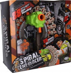 Pistolj Spiral Enforcer s lopticama donosi dinamičnu igru s dugim dosegom i visokim kapacitetom municije. Zahvaljujući dometu do 24 metra, uživat ćete u akcijskoj zabavi na većim udaljenostima, i u interijeru i eksterijeru. U pakiranju je 88 loptica i spremna vrećica, tako da je sve pri ruci i pauze u igri su minimalne.