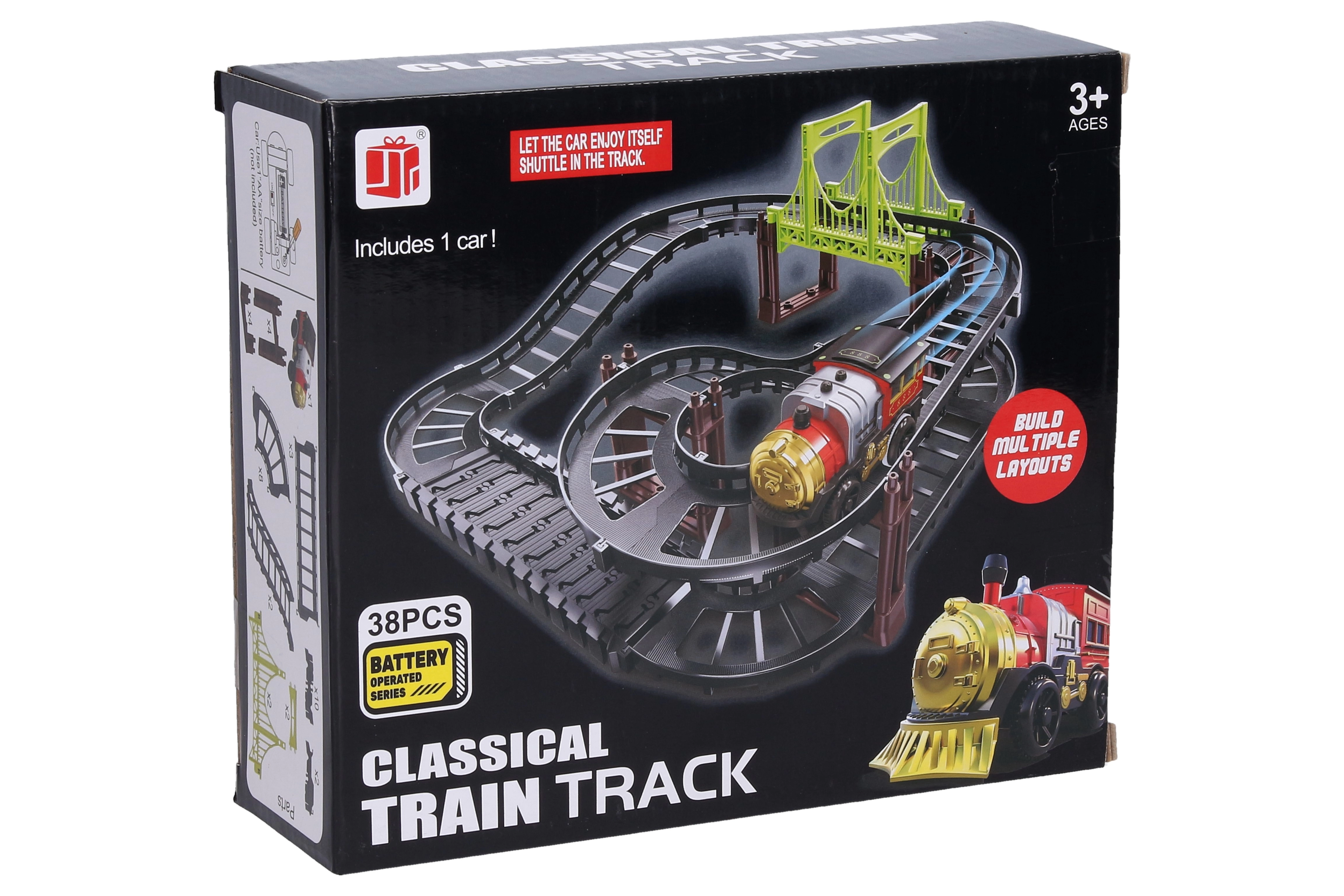 Zabavna željeznička pruga za djecu nudi jednostavno upravljanje i brzo sastavljanje. Lokomotiva na baterije pokreće se prekidačem ON/OFF, set sadrži 38 dijelova i oduševljava kompaktnim dimenzijama 31 × 32 × 14 cm. Idealan poklon za male ljubitelje vlakova.