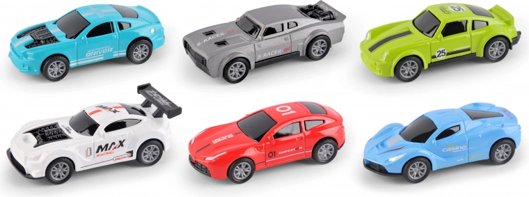 Otkrijte set kompaktnih metalnih trkaćih autića koji su idealni za dječje ruke i kućne utrke. Zahvaljujući robusnom metalnom tijelu i slobodnim kotačima, vožnja je glatka i zabavna na raznim podlogama. Različite boje i otisci unose raznolikost u igru i potiču maštu.