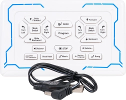 Robot se lako kontrolira putem 2,4 GHz daljinskog upravljača, a moguće je i programirati sekvence pokreta. U demo načinu sam će prikazati sve svoje vještine. Ugrađena punjiva baterija 3,7 V s USB punjenjem osigurava udoban rad; u daljinski upravljač potrebno je umetnuti 2× AA (nisu uključene).