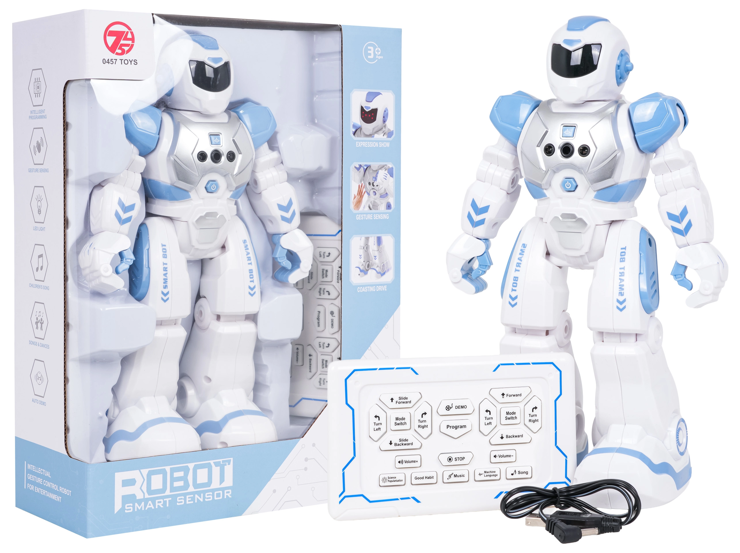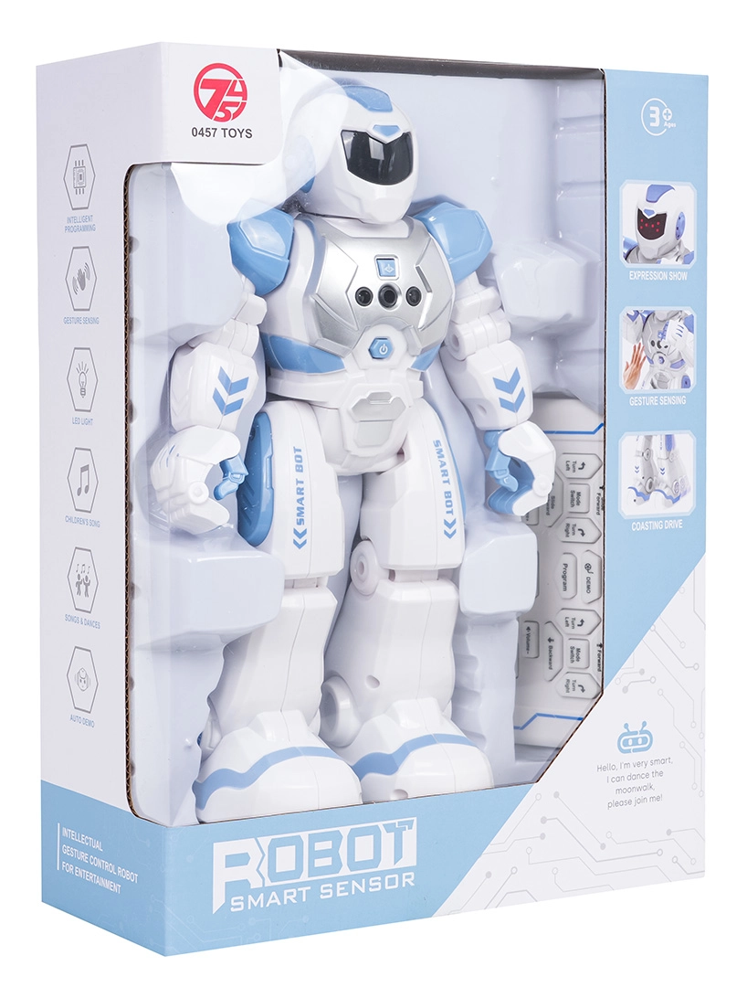 Zabavan i interaktivan robot SMART-BOT za djecu od 3 godine donosi sate pametne zabave. Zna plesati, okretati se za 360°, hodati naprijed/natrag, okretati se lijevo/desno, pomicati rukama i reagira na senzorne podražaje. Upravljanje se odvija putem 2,4 GHz daljinskog upravljača, tu su i programiranje pokreta, demo način, svjetleće oči i vesele melodije i pjesmice. Punjiva baterija 3,7 V je uključena u pakiranje.