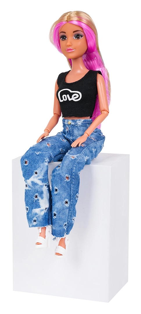 Stilska lutka Alicja razveselit će djecu od 3 godine. Ima dugu kosu koja se može češljati, pokretne ruke i noge sa zglobovima u laktovima i koljenima za lako poziranje. Odjevena je u moderan outfit s odvojivom odjećom i salonkama s potpeticom – idealno za kreativno presvlačenje i igru s pričama.