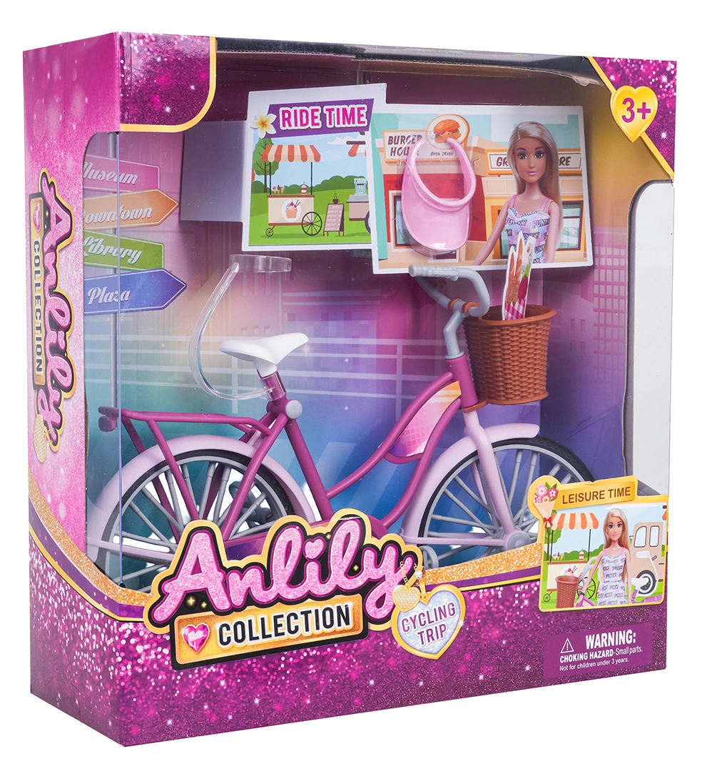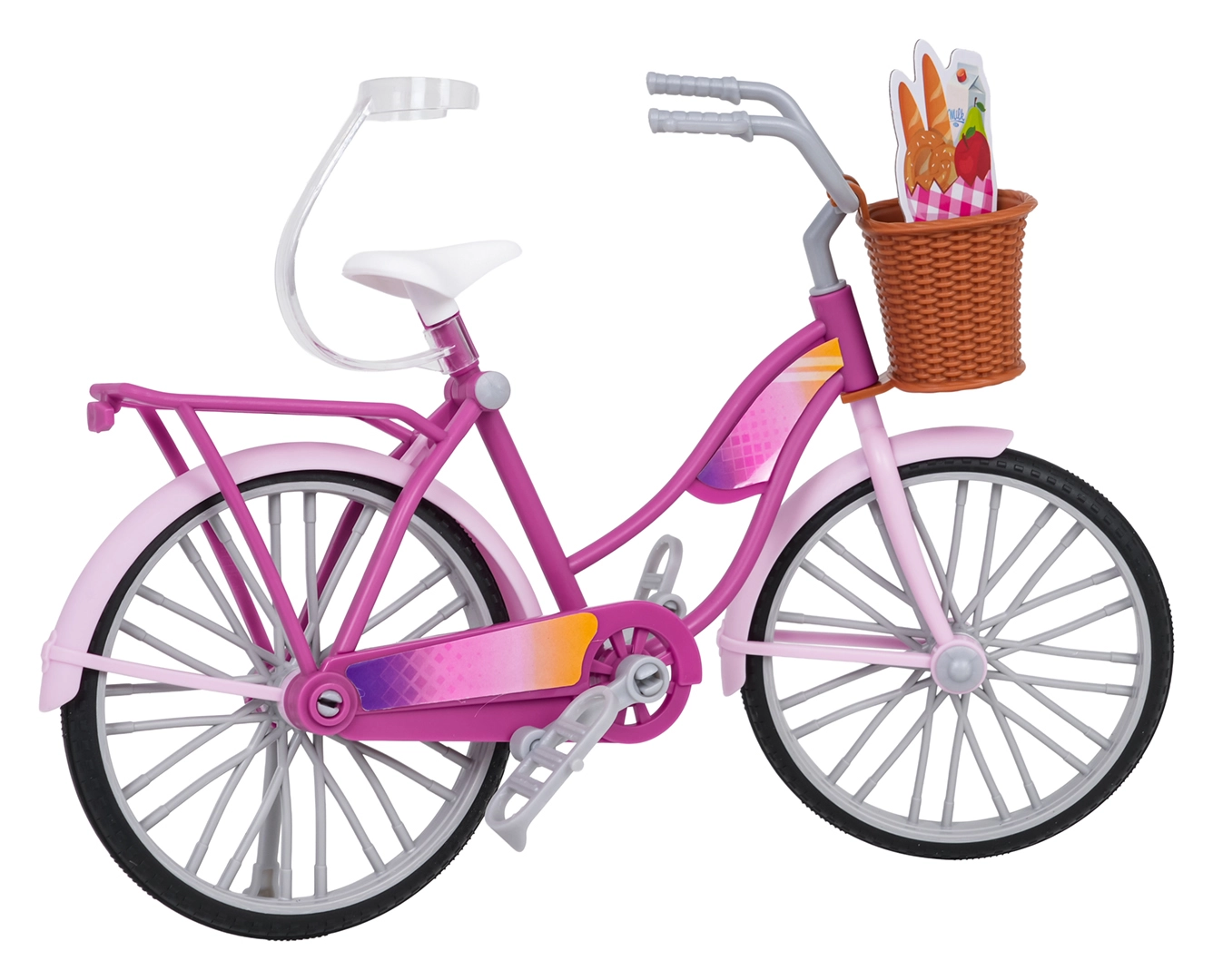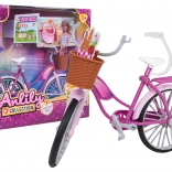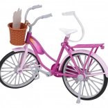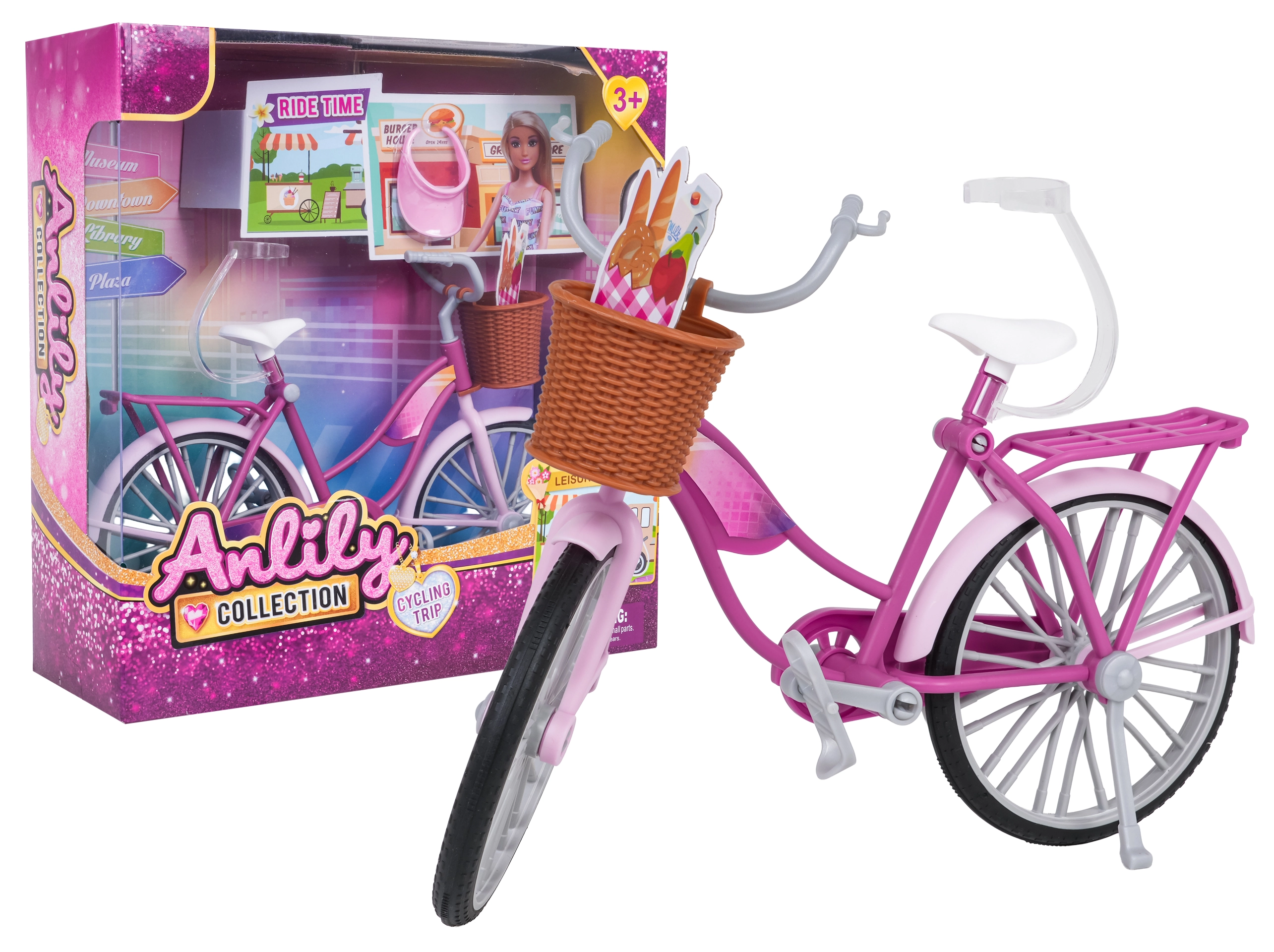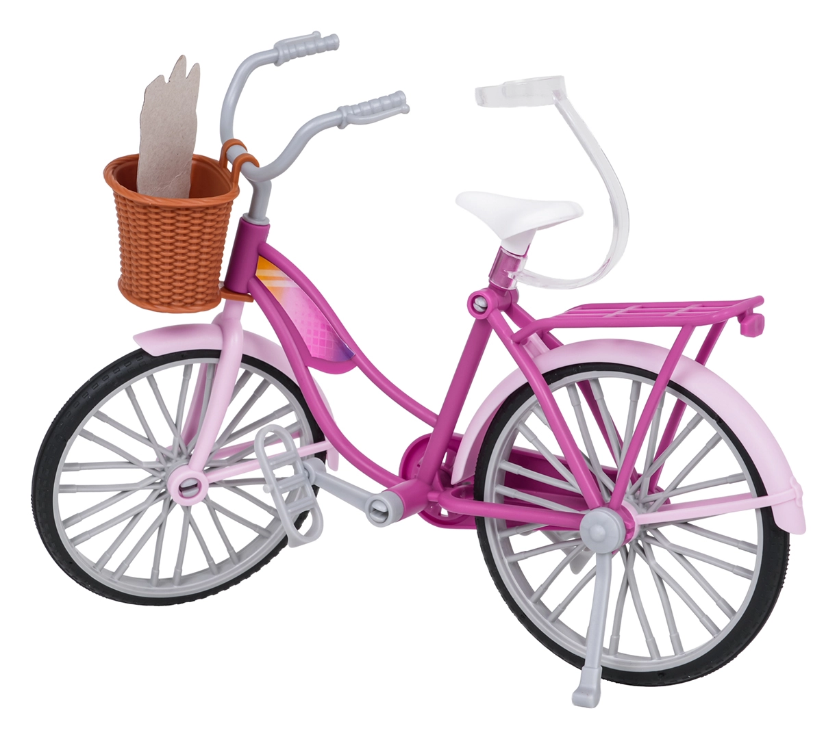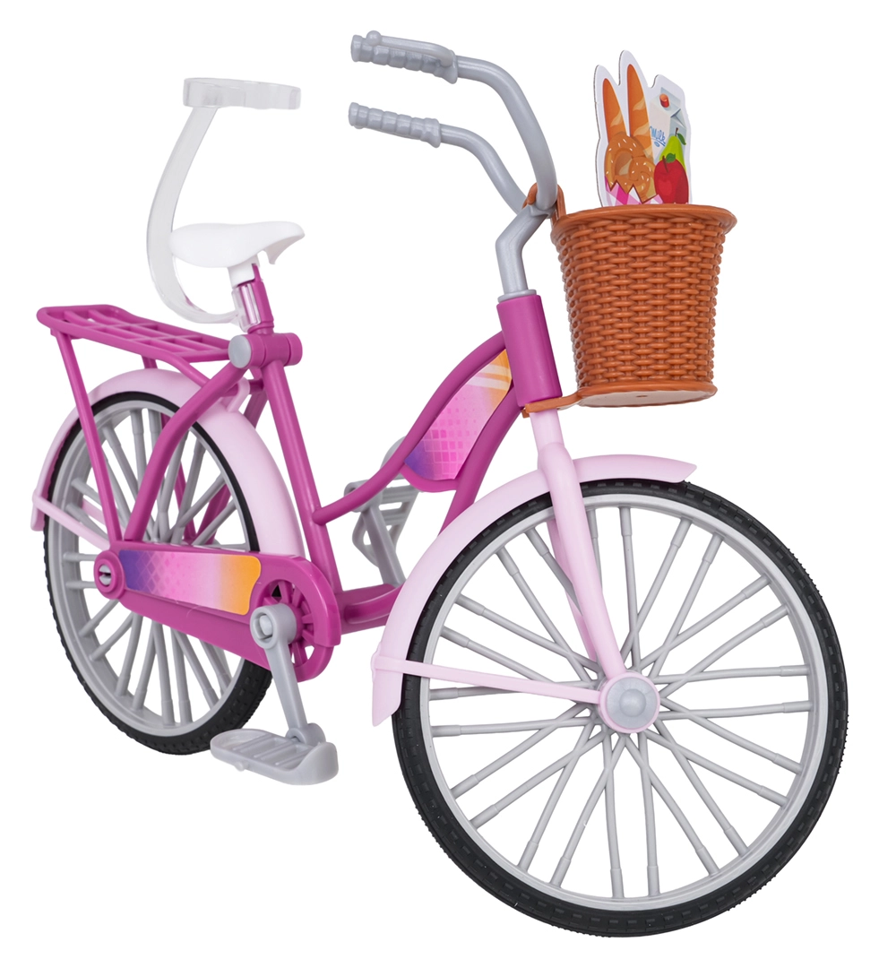Presladak ružičasti bicikl za lutke oduševit će mališane od 3 godine. Ima detaljno izrađenu okvirnu konstrukciju, pokretne kotače, pedale i upravljač, prednju košaricu za sitnice i stražnji nosač. U kompletu je i stalak za stabilno parkiranje te kapa s vizirkom za lutku. Izrađeno od kvalitetnih materijala u živim bojama – idealno kao maštovit poklon za male ljubitelje igre uloga.