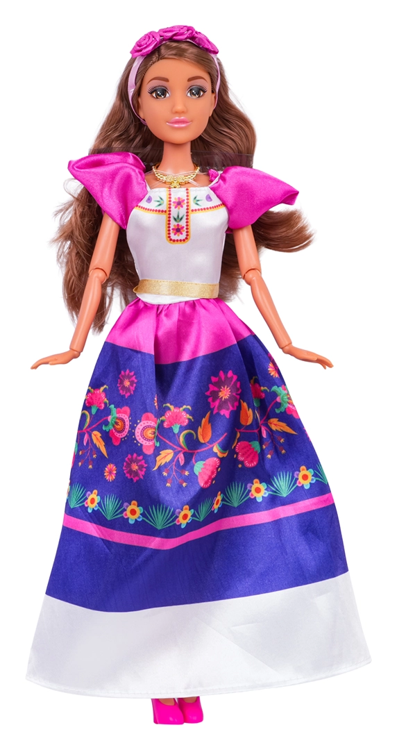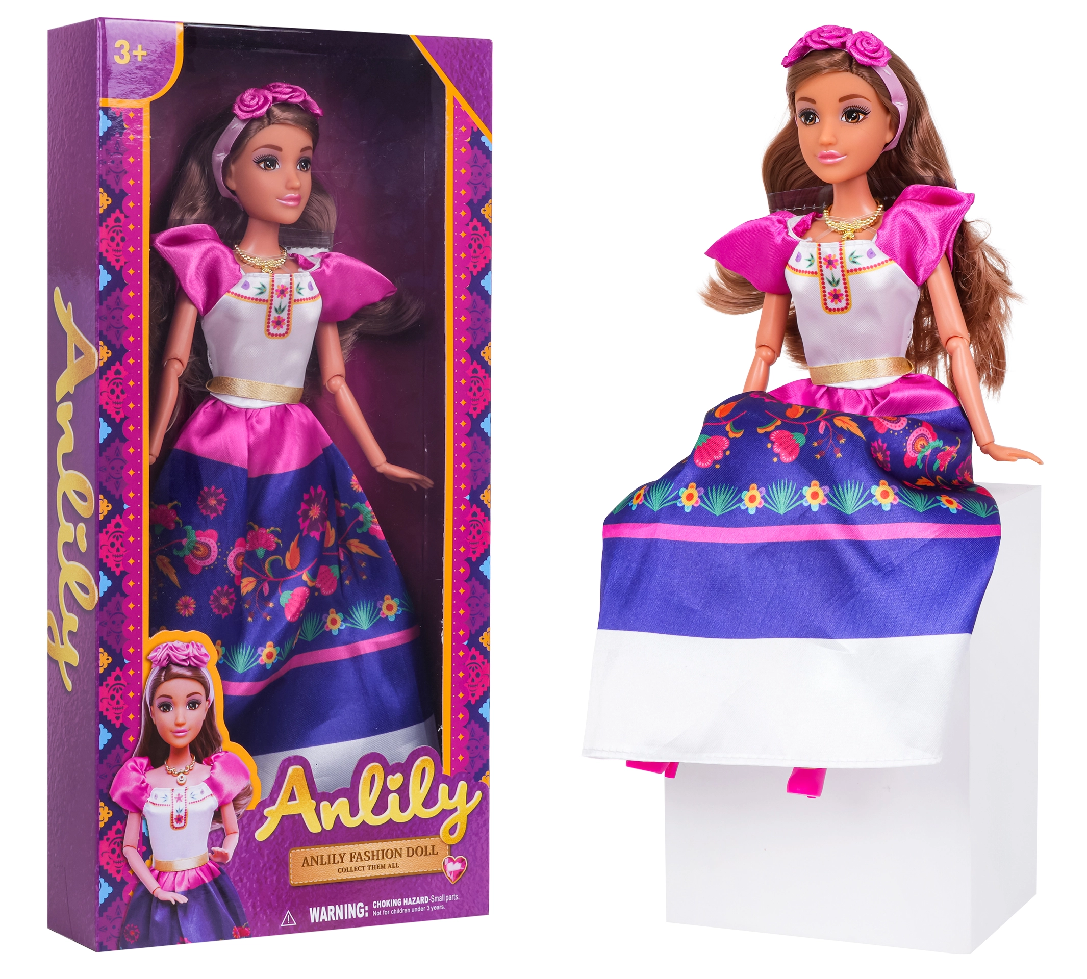 Preslatka lutka Martyna za djecu od 3 godine ima dugu smeđu kosu s trakom, pokretne ruke i noge s zglobovima na laktovima i koljenima te nosi šarenu haljinu s cvjetnim uzorkom. Izrađena je od kvalitetnih materijala i izvrstan je poklon za male ljubitelje modnih lutki.