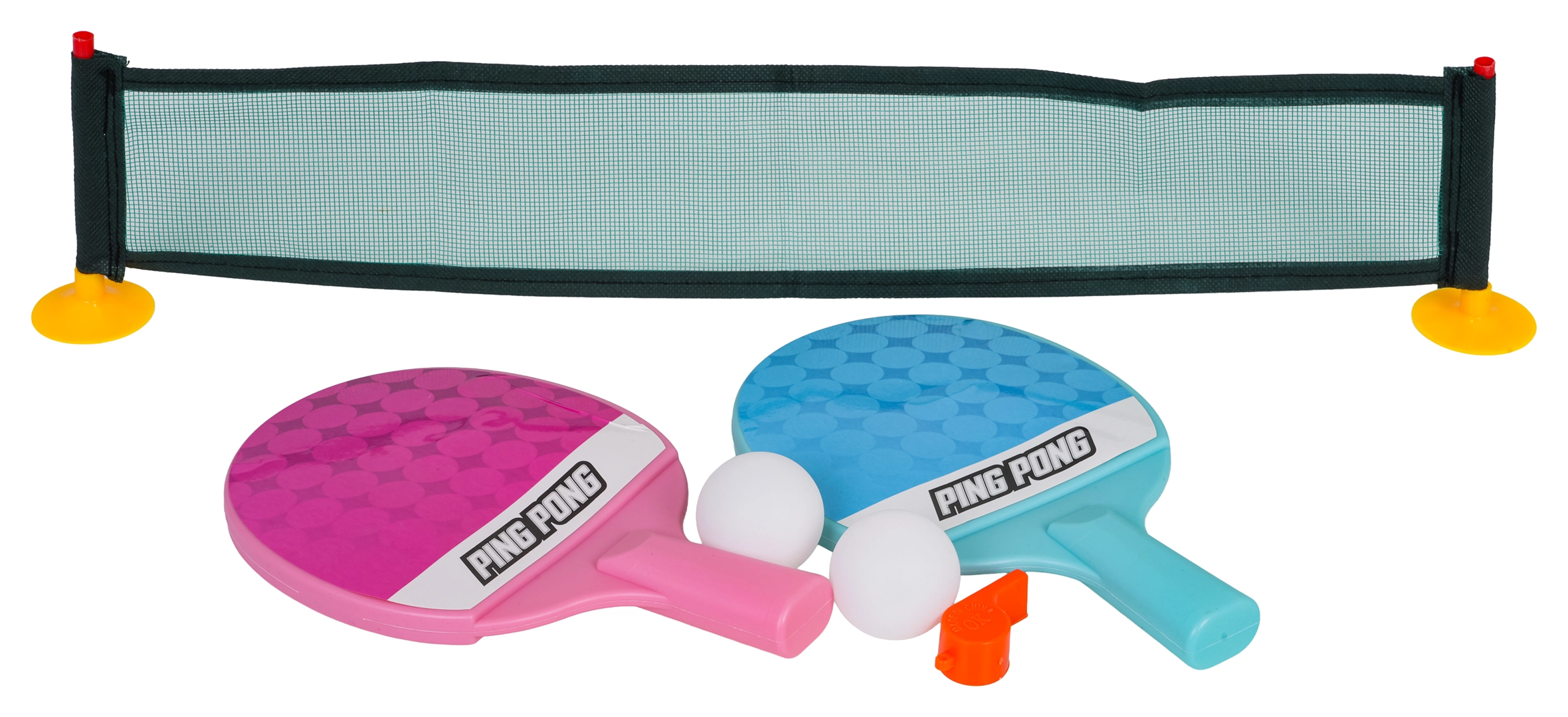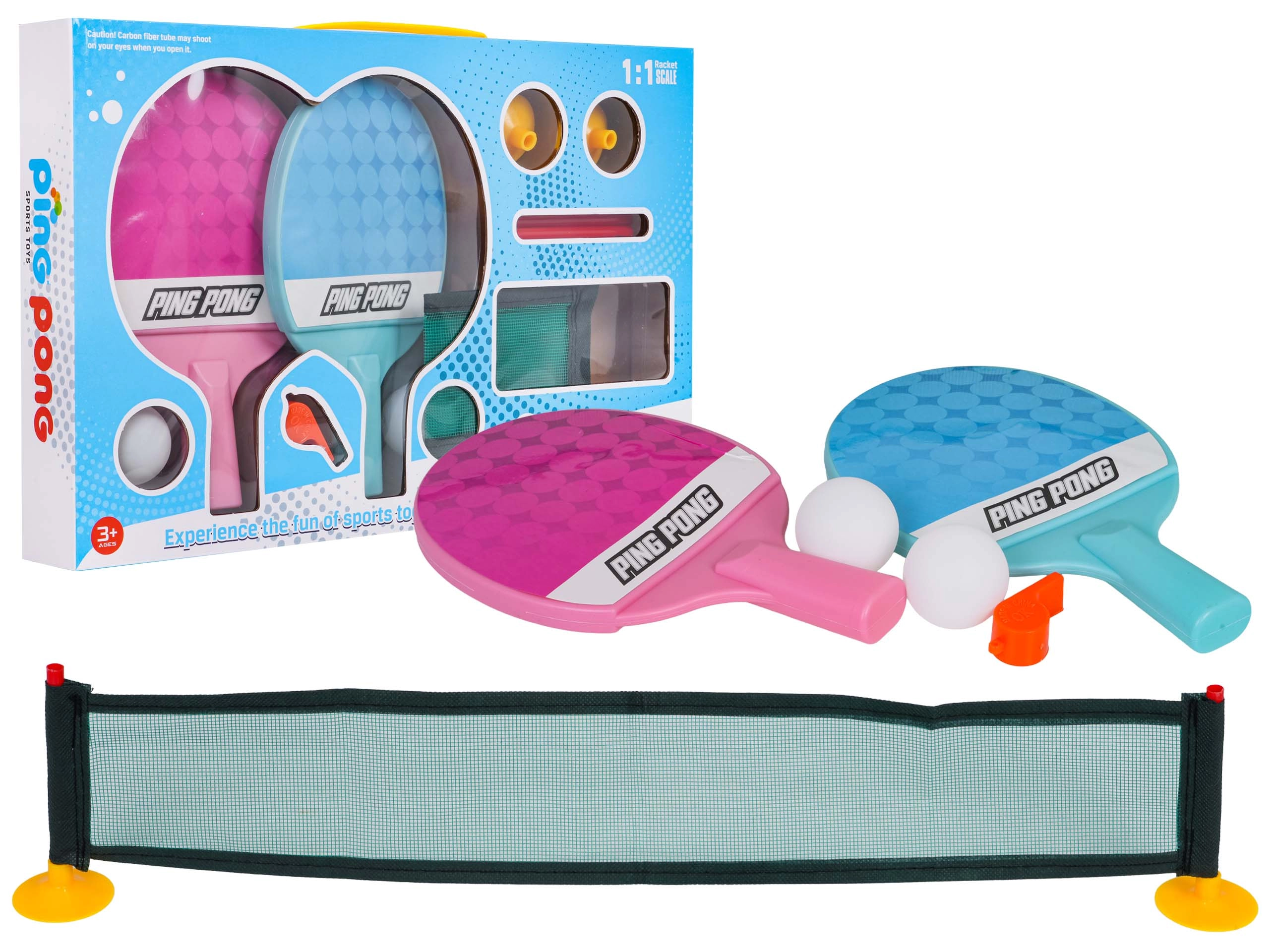 Zabavan i lako sklopiv set za stolni tenis za djecu od 3 godine naviše. Zahvaljujući vakuumskim čepovima brzo ga pričvrstite na glatki stol i možete odmah igrati. U kompletu su dvije palice, dvije loptice, mreža s plastičnim stupovima, vakuumski čepovi i također zviždaljka. Idealan za zabavu kod kuće i kao poklon. Jednostavna montaža, aktivna igra u slobodno vrijeme, prikladno za mlađu i stariju djecu.