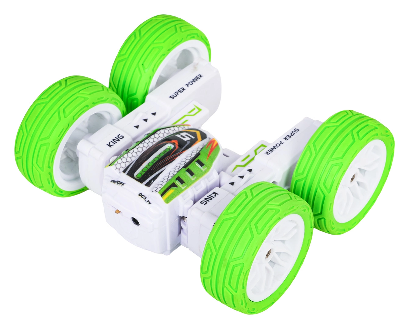 RC kaskaderski auto POWER STUNT u mjerilu 1:32 osmišljen je za dinamičnu zabavu. Veliki, izrazito prianjajući gumirani kotači omogućuju vožnju naprijed i natrag, bočno, prevrtanje i akrobatske trikove uključujući 360° rotacije. Robusna plastična karoserija podnosi udarce, pa je idealna za kućne podove i glatke vanjske površine.