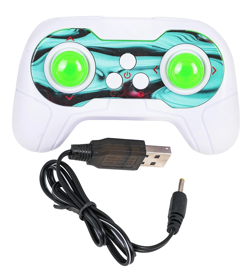 Integrirani LED svjetlosni efekti sa šarenim bljeskanjem dodaju atmosferu i pregled smjera. Upravljanje je jednostavno preko 2,4 GHz RC upravljača (napajanje 2× AAA – nisu uključene), dok samo vozilo napaja punjiva baterija 3 × 3,7 V (uključeno) s punjenjem putem priloženog USB kabela.