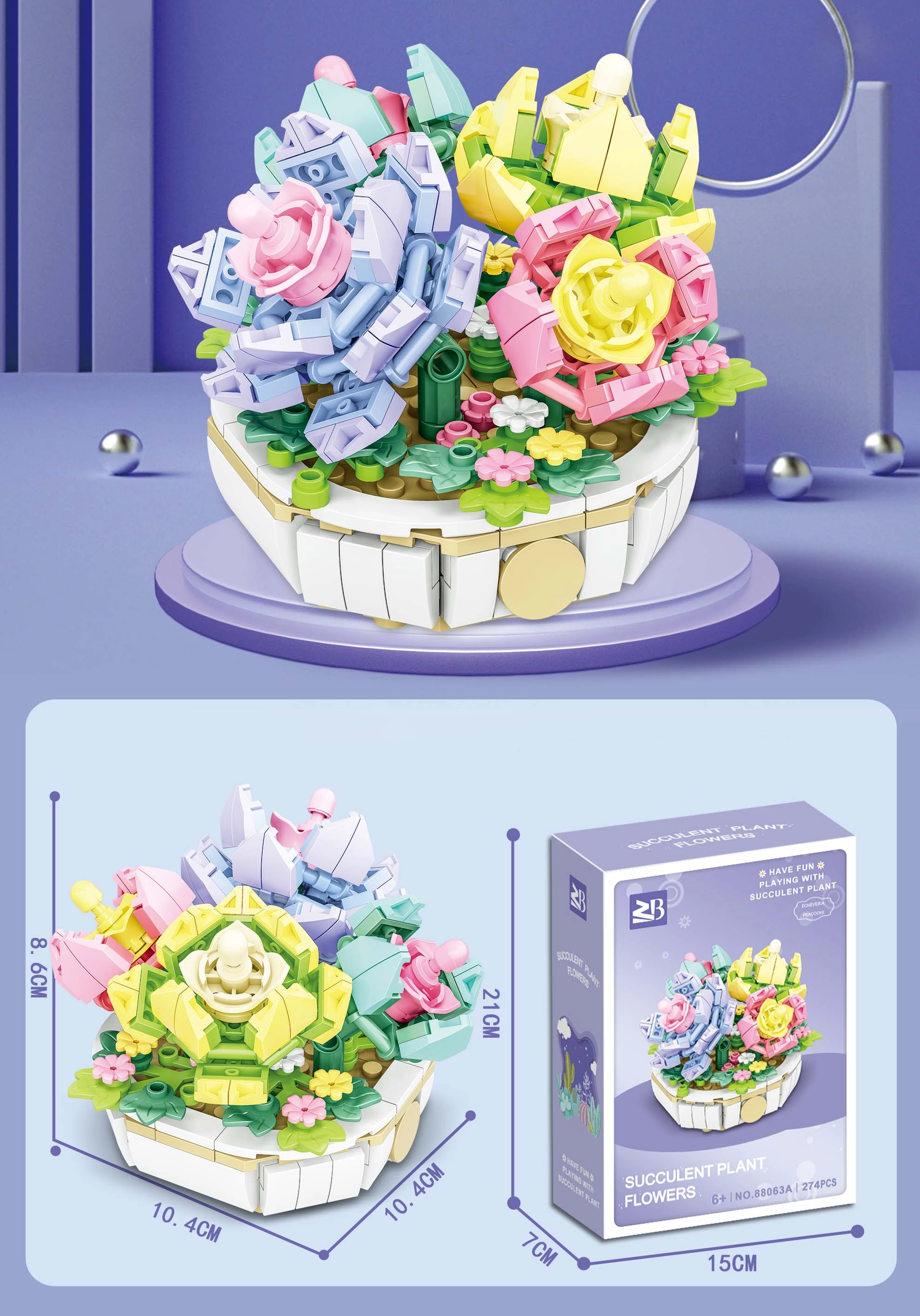 Kreativni set za slaganje za djecu od 6 godina s ukupno 274 dijela omogućuje izradu dojmljive cvjetne dekoracije u posudi. Zahvaljujući kvalitetnoj plastičnoj izradi model je čvrst i izdržljiv te je izvrstan kao poklon i kao ukras interijera.