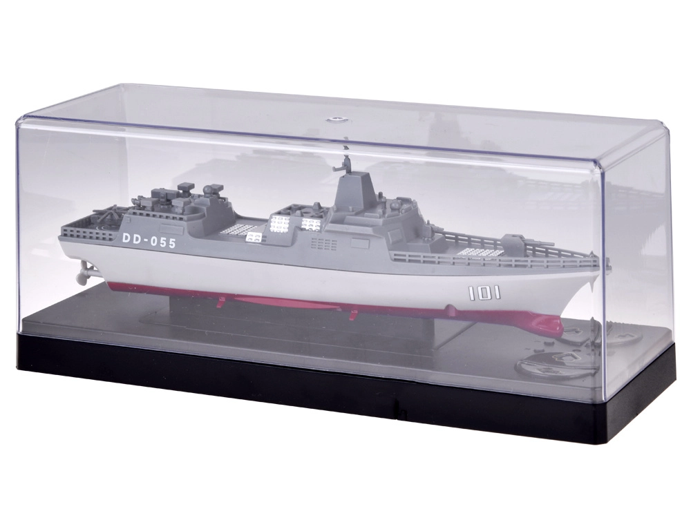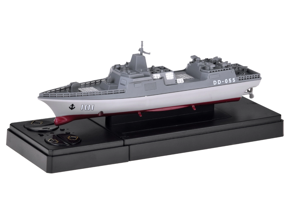 Otkrijte snagu oceana s modelom RC torpednog razarača DD-055. Brod u sivo-crvenoj kombinaciji vjerno oponaša moderni raketni razarač i impresionira bogatim detaljima – od palubnih elemenata do sletne površine za helikopter. Zahvaljujući kompaktnoj veličini, izvrsno se upravlja, a ujedno se ističe na polici u mini vitrini koja je dio pakiranja.