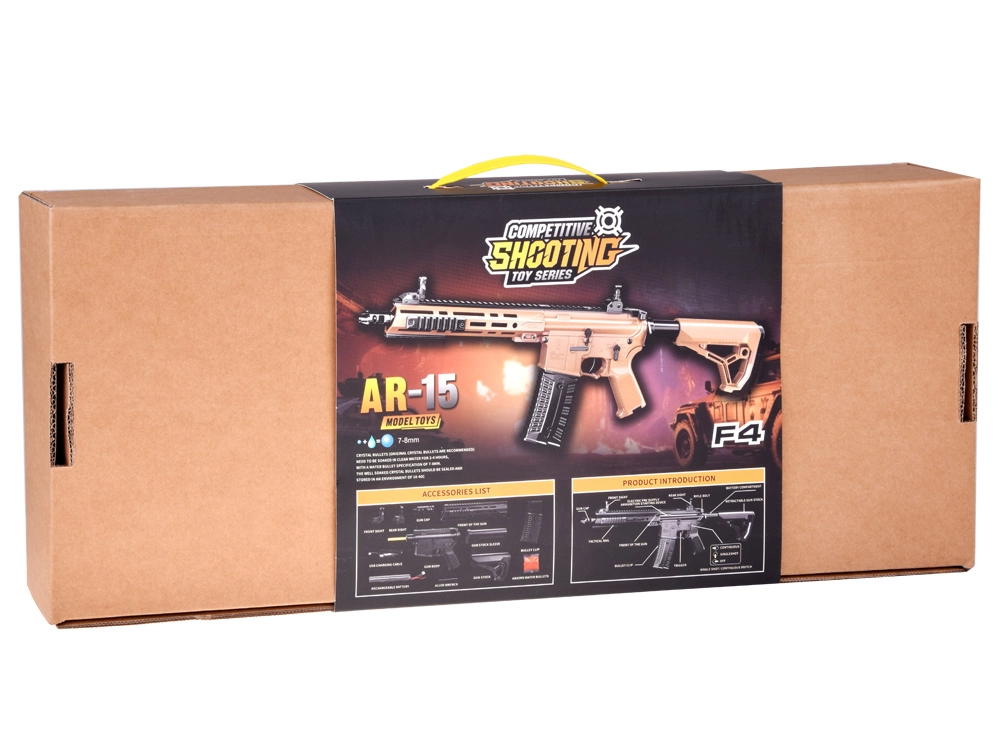 Električna gel pištolj F4 donosi akcijsku zabavu za djecu i odrasle. Zahvaljujući pogonu na akumulator i USB punjenju, rukovanje je jednostavno i bez brige. Realistična izvedba s taktičkim elementima, sklopivim nišanima i podesivim kundakom pruža uranjajuće iskustvo u igrama vojnika ili policijskih misija.