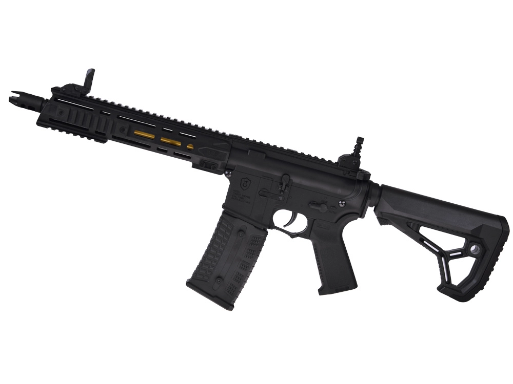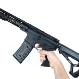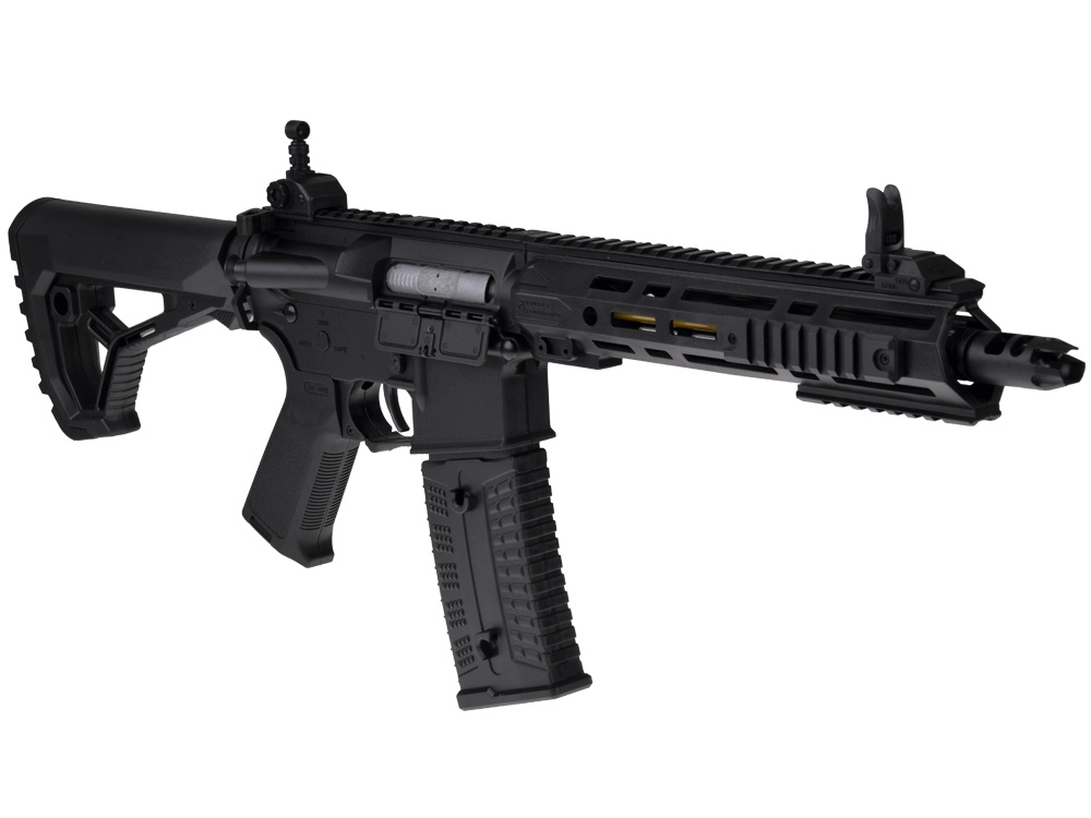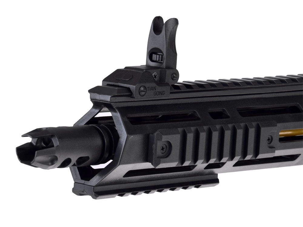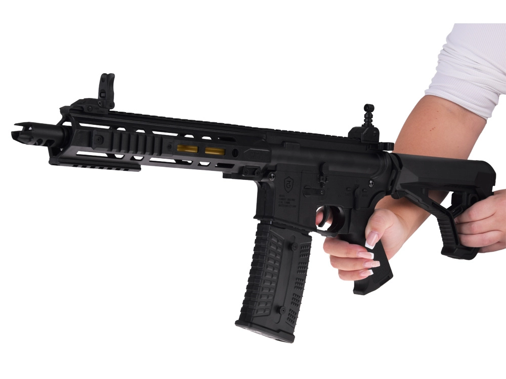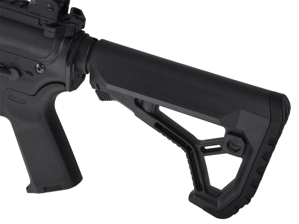 Dugo prednje rukohvatalo s montažnim šinama, sklopivi nišani i podesiv kundak pojačavaju doživljaj igre i poboljšavaju ergonomiju držanja.