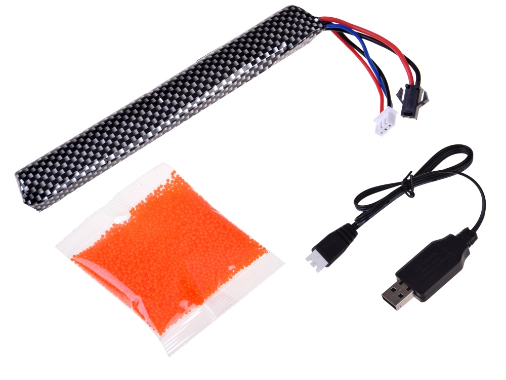 - gel pištolj F4, spremnik, akumulator 7,4 V 1200 mAh, USB kabel, vrećica gel kuglica za pripremu, imbus ključ, prigušivač (dekorativni), 2× nišan, kundak