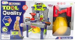 Stolić ima promišljene dimenzije i spremišne elemente – police i otvore za alat, kako bi sve bilo pregledno pri ruci. Najveća atrakcija je električni odvijač napajan 2× 1.5V AA (uključene u pakiranju), koji omogućuje bušenje i zavrtanje vijaka kao u pravoj radionici. Kombinacija boja i mnoštvo komponenti potiču izradu vlastitih projekata i konstrukcija.