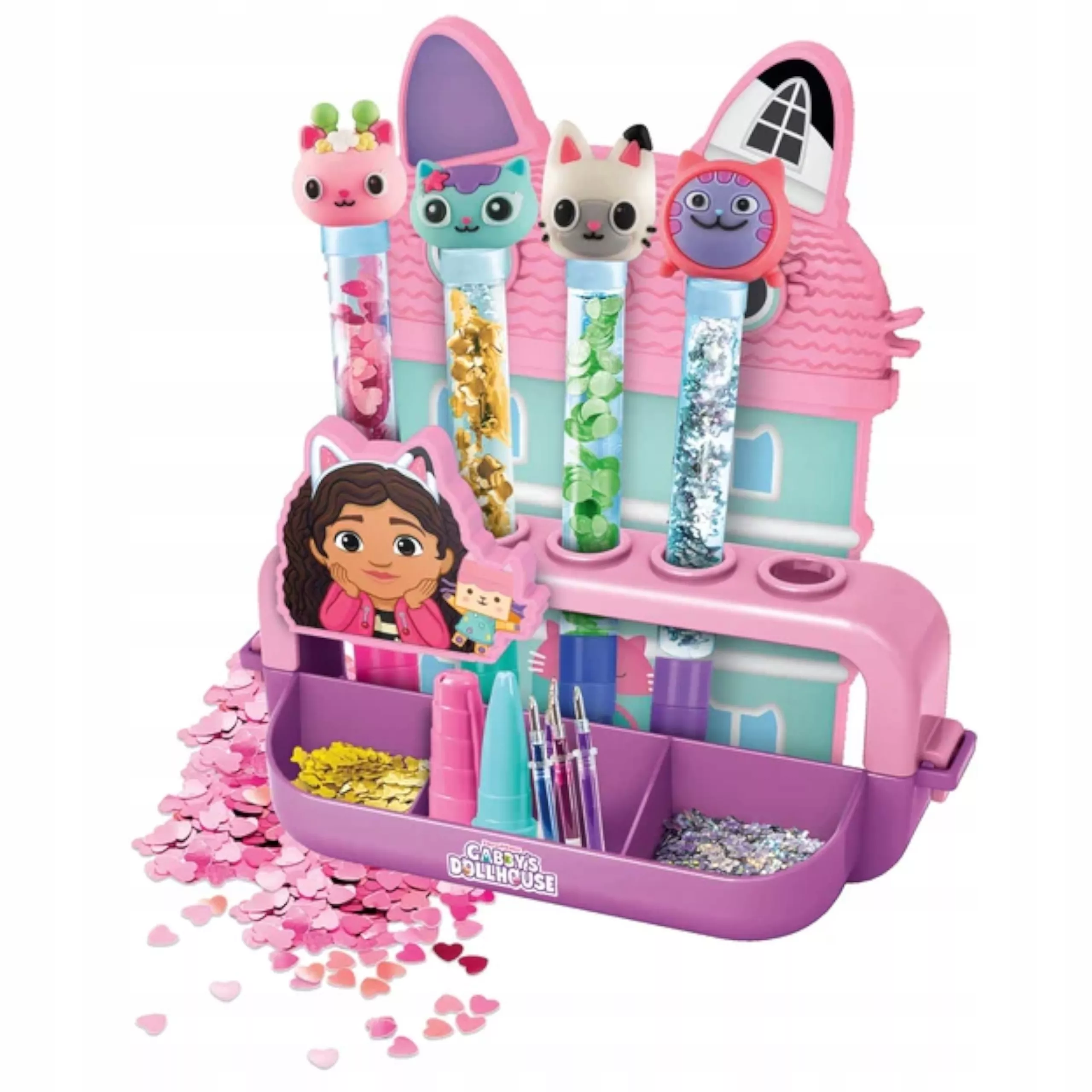S ovom zabavnom “tvornicom olovaka” djeca će dizajnirati i ukrašavati pribor za pisanje potpuno po svojem. Radna stanica jednostavna je za upotrebu, omogućuje doziranje ukrasa te dodatno ukrašavanje olovaka šljokicama, konfetima ili naljepnicama iz omiljenog svijeta GABBY’S DOLLHOUSE.