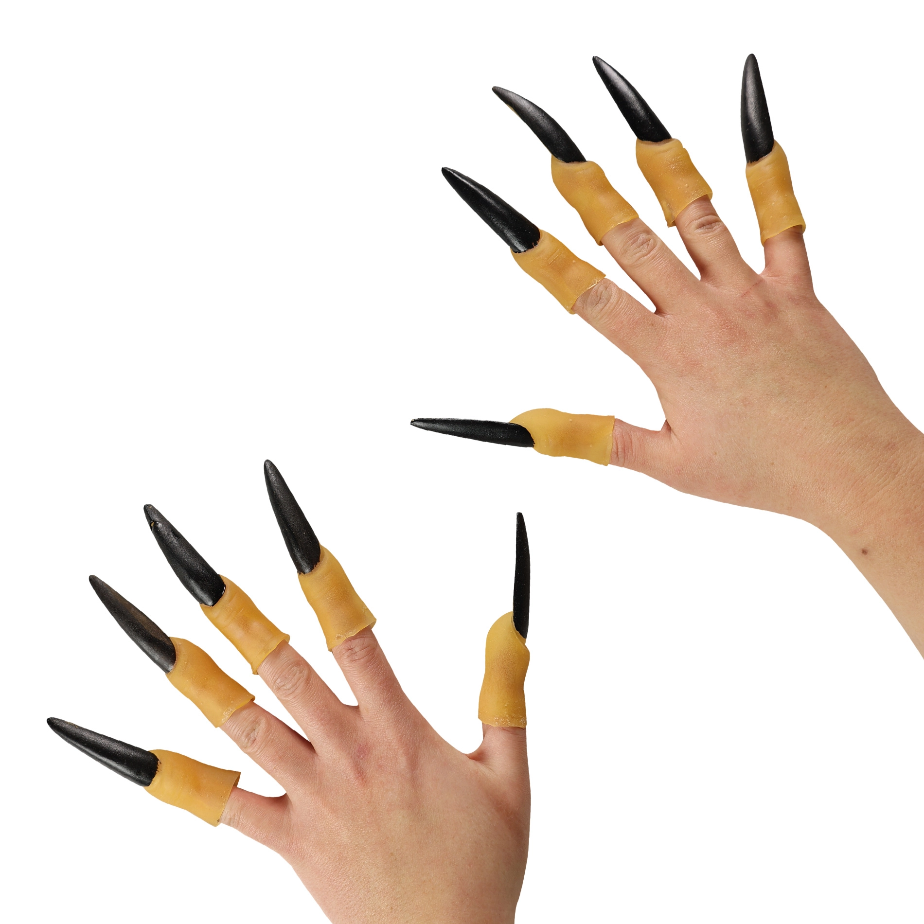Dovrši svoj kostim ovim jezivim gumenim prstima. U pakiranju je 10 prstiju s dugim crnim noktima, idealno za vještice, strašne maske i Halloween zabave.