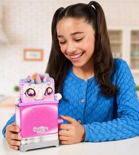 Otkrijte čaroliju kuhanja s tosterom Cookeez Makery koji skriva iznenađenje – mekane, šarene i mirisne plišance u obliku doručkastih poslastica. Dovoljno je umetnuti “krišku” u utor, pritisnuti ručicu i otkriti mirisnog maskotu iz jedne od 6 različitih varijanti.