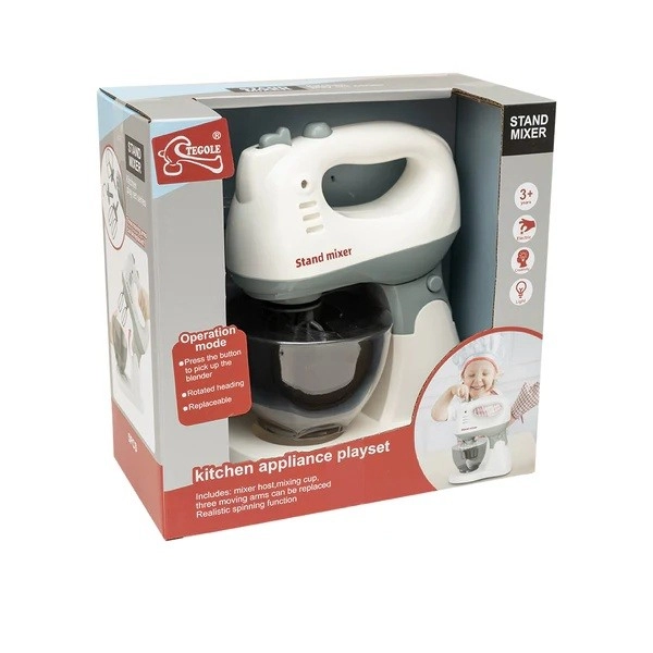 Mikser se može koristiti na stabilnom stalku ili ga jednostavno odvojiti i pretvoriti u ručnu varijantu. Lagana i izdržljiva plastična konstrukcija dizajnirana je za male ruke i sigurnu igru.