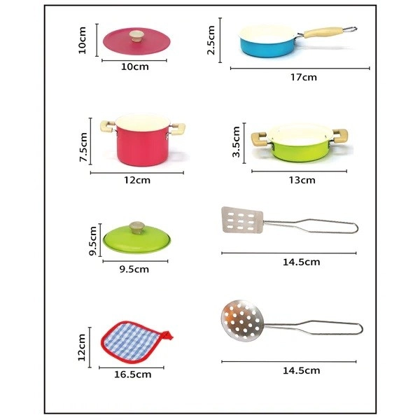 - Set od 8 dijelova – sve potrebno za igru kuhanja.