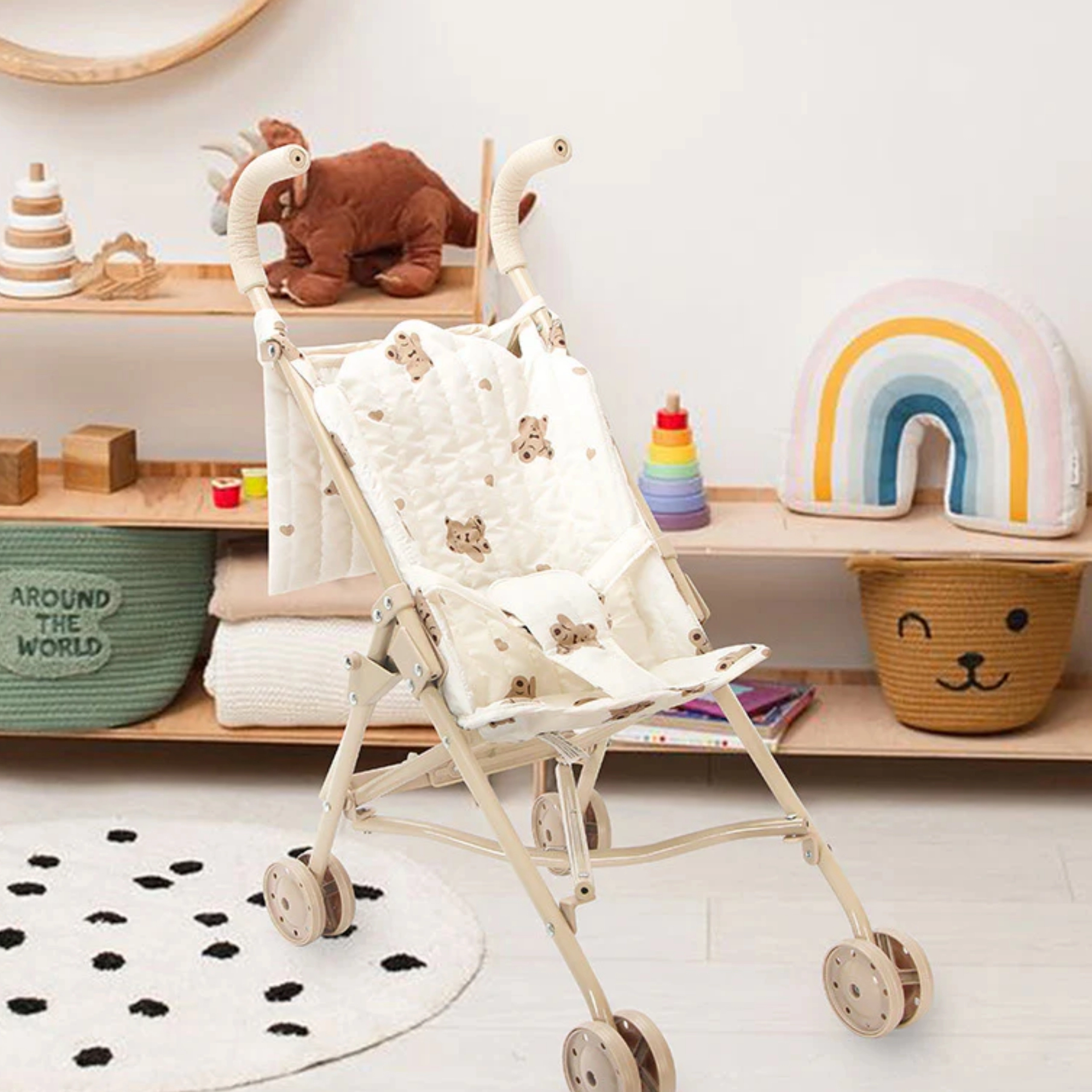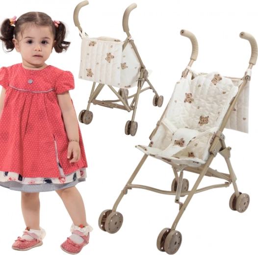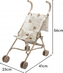 Ova šarmantna kolica za lutke spajaju udobnost, sigurnost i praktičnu sklopivost. Dupli kotači omogućuju glatko kretanje, dok se čvrsta, ali lagana konstrukcija u tren oka sklapa na kompaktne dimenzije. Krem sjedalo s preslatkim uzorkom medvjedića daje igri poseban šarm i mami na nova pustolovna iskustva u domu i na otvorenom.