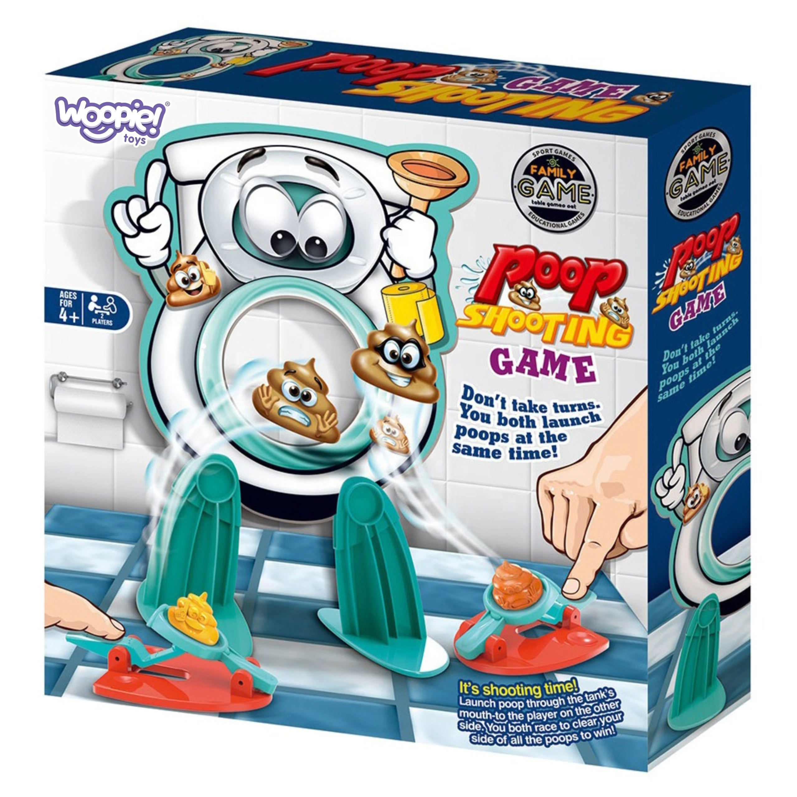 Zabavna obiteljska igra Woopie Gađanje kakica u WC donosi brzu i veselu utrku za dva igrača. Svaki igrač ispaljuje plastične kakice iz svoje katapulta u nasmijani WC – tko prvi očisti svoju stranu, pobjeđuje! Zahvaljujući laganoj konstrukciji, glatkim rubovima i jednostavnom upravljanju idealna je za obiteljske večeri, dječje zabave i kao duhovit poklon za djecu od 4 godine naviše.
