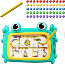 Otkrijte učenje kroz igru s dječjom magnetičnom pločom u obliku raka brenda WOOPIE. Zahvaljujući magnetskoj olovci djeca pomiču kuglice kroz labirint, vježbaju finu motoriku, koordinacijske vještine i osnove matematike. Izdržljiva i sigurna konstrukcija, bez baterija, idealna za dom i putovanja.