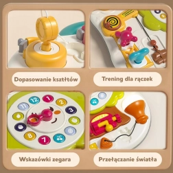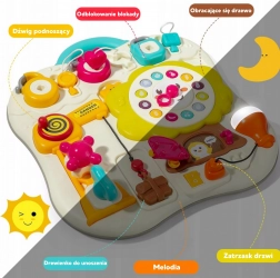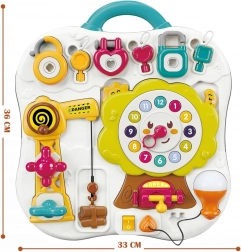 Otkrijte zabavan svijet učenja s interaktivnom manipulativnom pločom Woopie, koja motivira djecu da istražuju uzrok i posljedicu te uvježbavaju praktične vještine. Raznovrsni elementi poput brava s ključevima, prekidača, okretnih kotačića i funkcionalnog sata s kazaljkama razvijaju koordinaciju oko–ruka te potiču samostalnost i kreativnost.